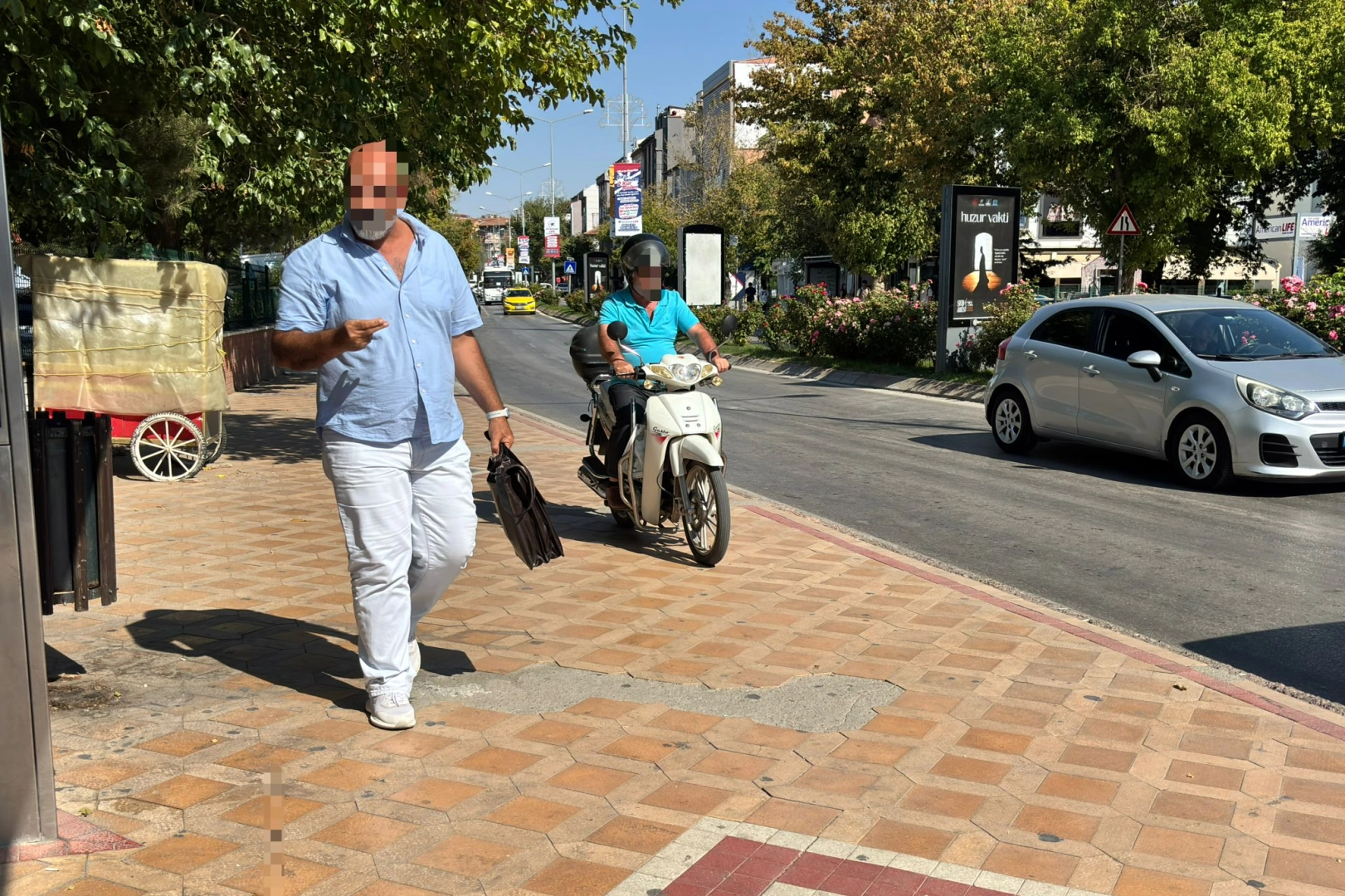 Edirne’de okulların açılmasıyla birlikte kent merkezindeki trafik yoğunluğu arttı. Trafikte zaman kaybetmek istemeyen bazı motosiklet sürücüleri ise yayalara ait kaldırımları kullanmaya başladı.