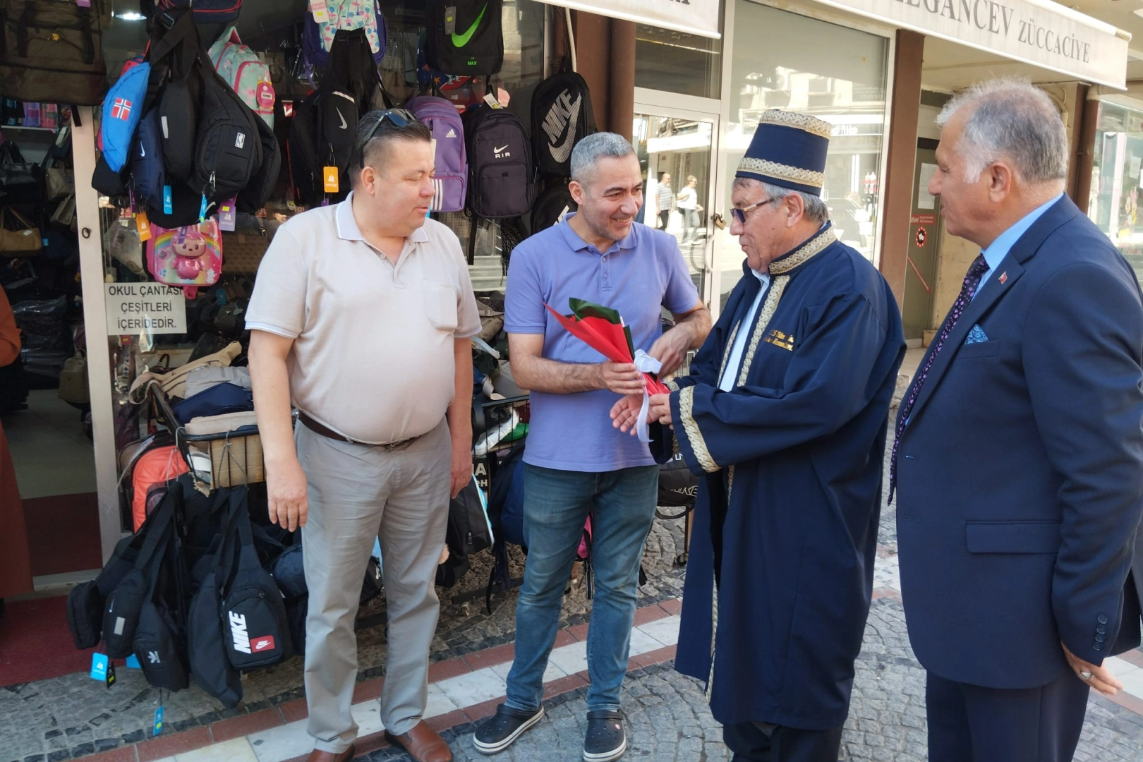 Edirne’de Ahilik Haftası çeşitli etkinliklerle kutlanıyor. Yılın Ahisi seçilen Feridun Kemallarlı, Ahilik Haftası etkinlikleri kapsamında Edirne’de esnaf ziyaretleri gerçekleştirdi. Edirne Ticaret İl Müdürü Mustafa Kurt, Edirne Esnaf ve Sanatkarlar Odaları Birliği Başkan Vekili Selçuk Gül’ün katıldığı ziyaretlerde Ahi Kemallarlı esnafa çiçek verdi.
