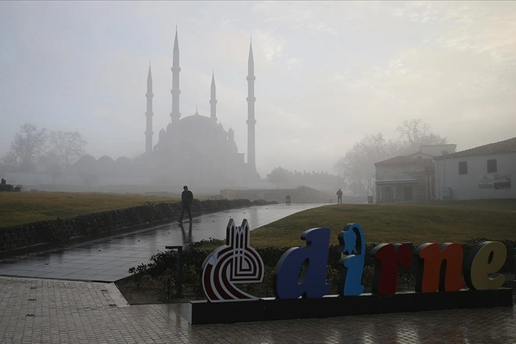Selimiye Camisi başta olmak üzere birçok anıt eser, sis altında gözden kayboldu.