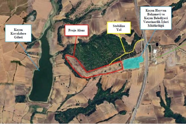 Proje alanına en yakın yerleşim biriminin Paşayiğit Mahallesi olduğu belirtilen dosyada, yaklaşık 3 bin 500 metre kuzeyinde yer aldığı ifade edildi. Proje alanına en yakın yapıların ise proje alanı sınırına kuş uçumu yaklaşık 35 metre doğusunda yer alan Keşan Hayvan Bakımevi ve Keşan Belediyesi Veterinerlik İşleri Müdürlüğü ve yaklaşık 390 metre doğusunda yer alan Uzay Gözlem Merkezi Yönetim Ofisi olduğu belirtildi. Proje alanının 160 metre batısında da Keşan Kavakdere Göleti bulunuyor.