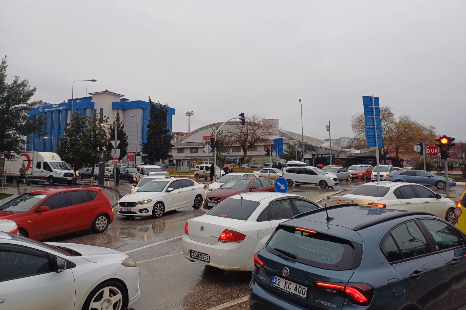 Bugün de yağan yağmur ve soğuk hava etkisi ile birlikte araç kullanımı arttı. Artan araç kullanımı ile birlikte şehrin yoğun bölgelerinde uzun araç kuyrukları oluştu.
