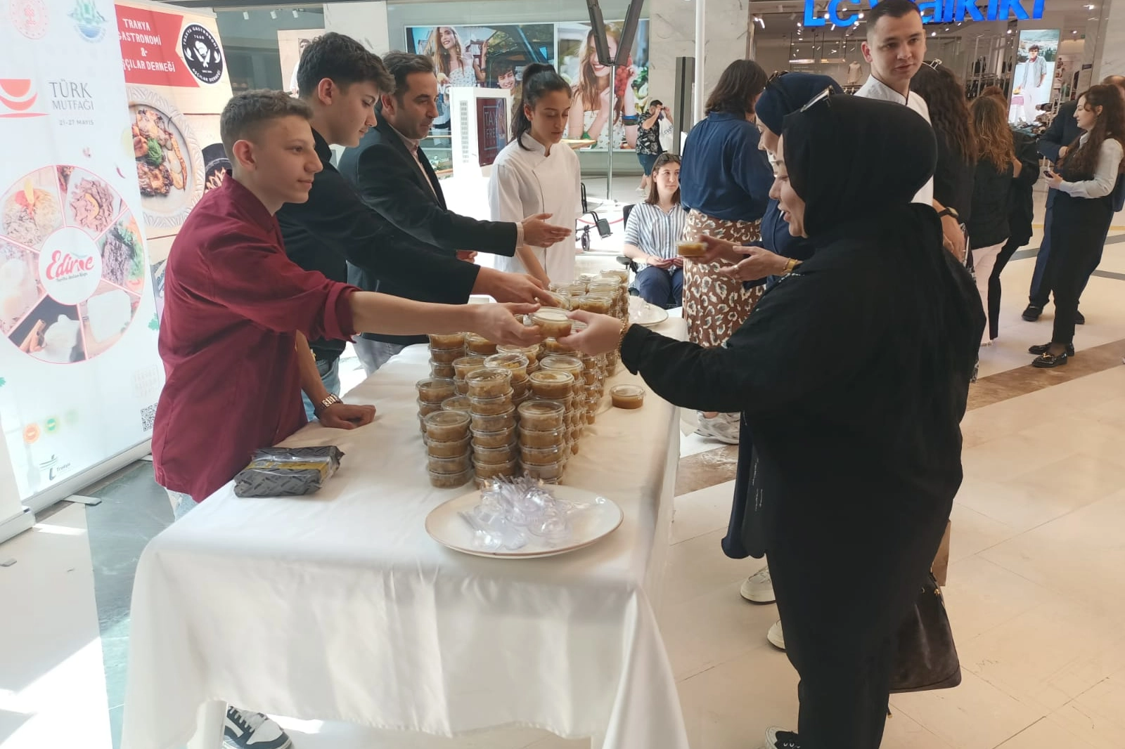 Edirne Valiliği, İl Kültür ve Turizm Müdürlüğü'nün Trakya Gastronomi ve Aşçılar Derneği ve Edirne Mesleki Eğitim Merkezi iş birliğiyle düzenlenen etkinlikte, kentteki bir alışveriş merkezinde irmik helvası dağıtıldı. Trakya Gastronomi ve Aşçılar Derneği şefleri ve Edirne Mesleki Eğitim Merkezi öğrencileri tarafından hazırlanan toplam 300 adet irmik helvası, vatandaşların tadımına sunuldu.
