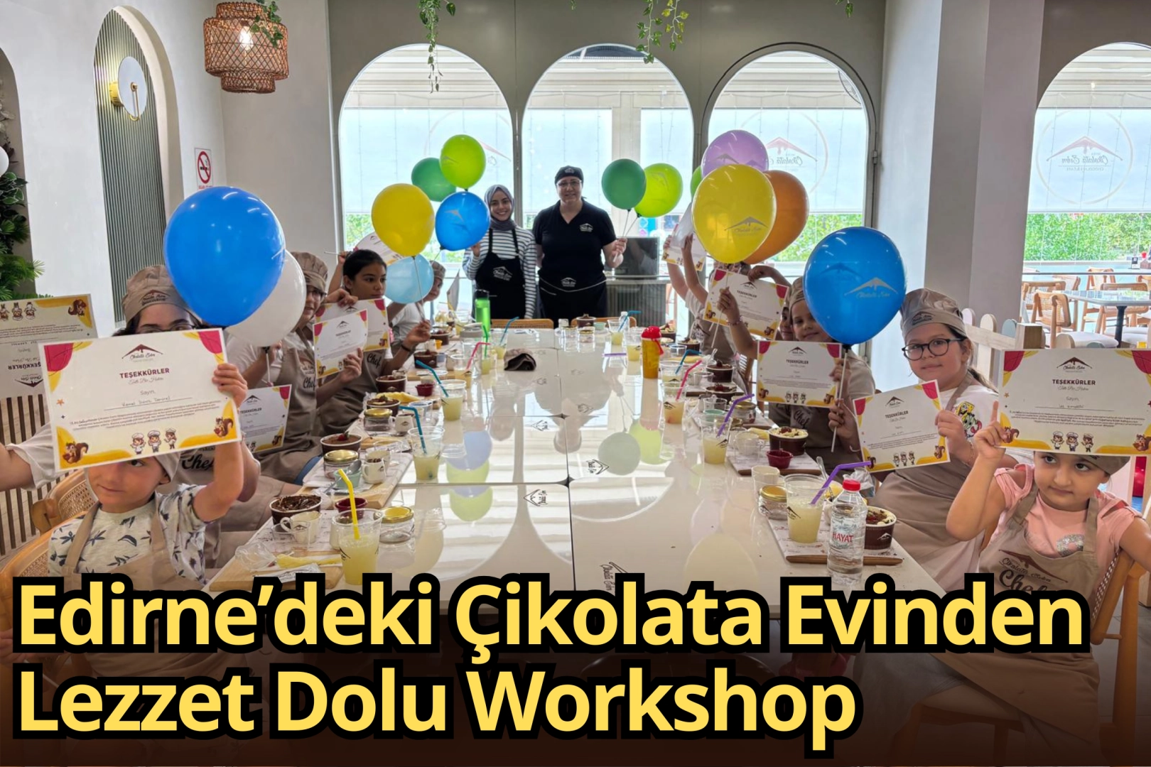 Edirne'de bir çikolata evi, çocukların kişisel gelişimlerine katkıda bulunmak amacıyla renkli ve lezzet dolu bir etkinliğe imza attı. Katılımı ücretli olan Çikolata Workshop’unda 5-12 yaş arasındaki çocuklar, hayal güçleriyle şekillendirdikleri saksı tatlılarını yaparak mutfakla tanıştı.