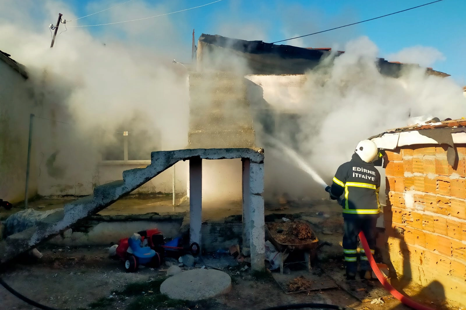 Edirne'nin Yıldırım Hacı Sarraf Mahallesi Pembegül Sokak’ta bulunan tek katlı müstakil bir evde henüz belirlenemeyen bir nedenle yangın çıktı.