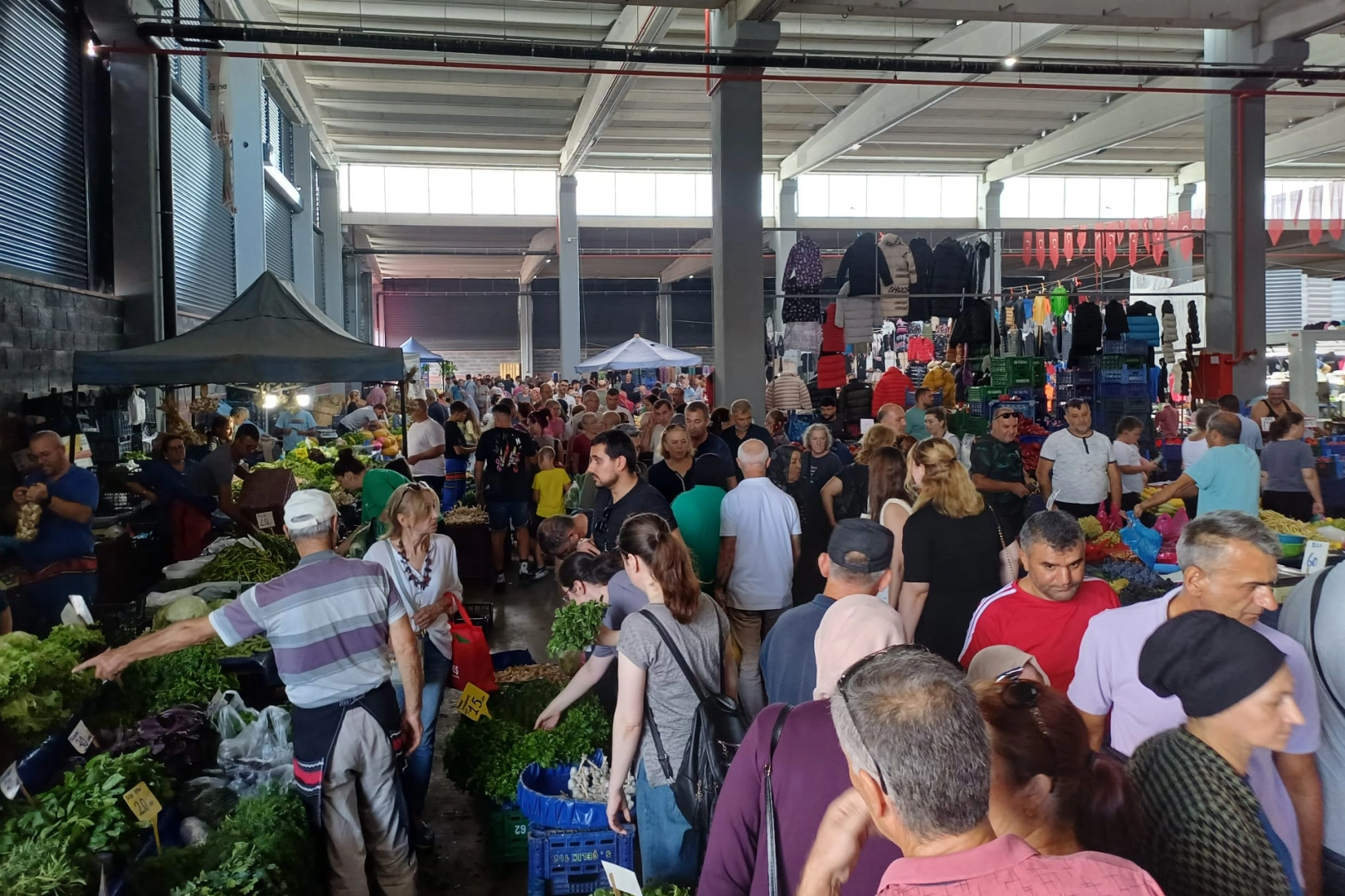 Pazarda temel gıda ürünlerinin yanı sıra sezonu dolayısı ile biber ve meyve - sebze tezgahları da ilgi gördü ancak alışveriş sepetlerinin eskisi kadar dolmadığı gözlemlendi.