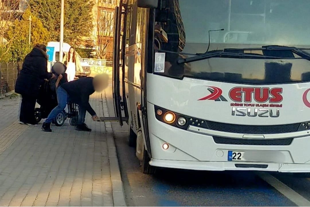 Edirne Toplu Ulaşım Sistemi (ETUS) minibüslerinden 22 M 01** plakalı minibüse binen engelli vatandaş ve yakını bir süre sonra minibüs şoförüyle tartışmaya başladı. Engelli vatandaş engelli kartını okuturken yakını da refakatçi olduğunu belirterek, ödeme yapmadı.