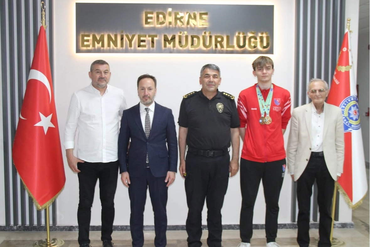 Edirne Emniyet Müdürü Onur Karaburun, Çin'de düzenlenen 2025 Gençler ve Yıldızlar Eskrim Dünya Şampiyonası'nda dünya ikincisi olan Candeniz Berrak'ı kabul etti.