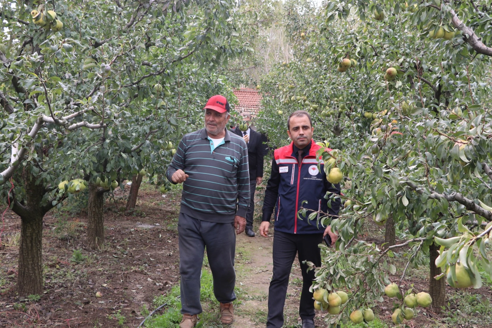 Edirne İl Tarım ve Orman Müdürü İslam Köse, Merkez Bosna Köyü’nde hünnap ve deveci armudu yetiştiriciliği yapan üretici Kenan Kırça’yı ziyaret etti.