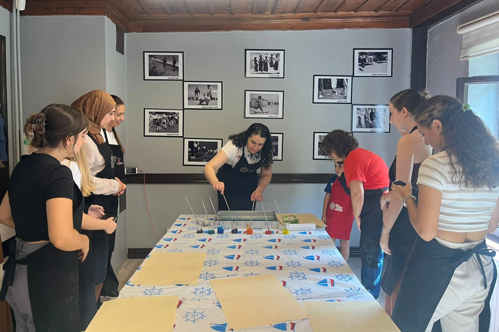 Atölyede, deneyimli ebru sanatçıları tarafından katılımcılara ebru sanatının tarihsel kökeni, teknikleri ve incelikleri anlatıldı. Su yüzeyine renklerin bırakılması ve desenlerin oluşturulması ile devam eden süreçte, katılımcılar kendi özgün eserlerini oluşturma imkânı buldu. Renklerin su üzerinde dans ettiği bu kadim sanatı uygularken, katılımcılar yaratıcılıklarını ortaya koyarak geleneksel ebru sanatına modern dokunuşlar eklediler.