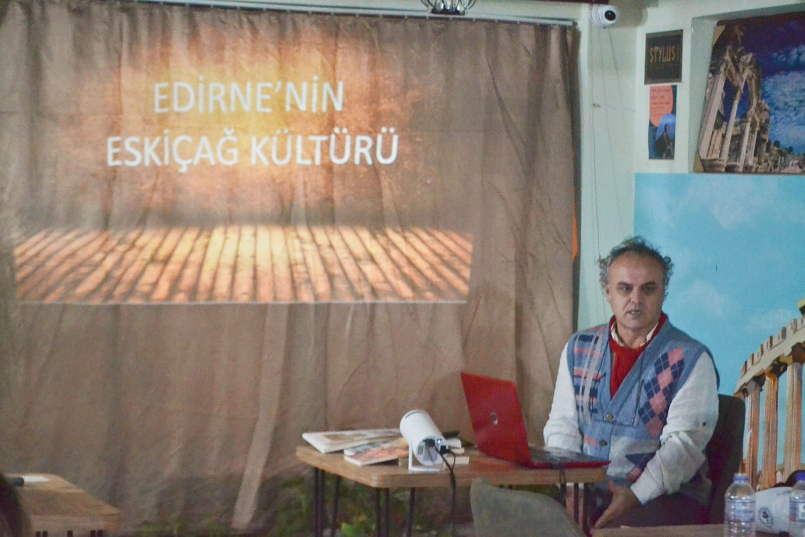 Prof. Dr. Erdoğu’nun yaptığı çalışmalarda bölgede Milattan Önce (MÖ) 5 binlere kadar giden figürinler bulduğunu belirten Doğan, özellikle mat beyaz boyalı seramik türünün bölgede çok yaygın olduğunu söyledi. Bölgede yapılan prehistorik araştırmalarda çok önemli bir merkezin tespit edildiğini ifade eden Doğan, 1950 yılında Prof. Dr. Şevket Aziz Kansu’nun Çardakaltı höyüğünü bulduğunu belirtti. Kansu’nun Çardakaltı höyüğünde kazılar yaparak yayımladığını söyleyen Doğan, Çardakaltı höyüğünün kalkolitik döneme kadar inen bulgular verdiğini ve Edirne’nin tarihini M.Ö. 5 binlere kadar indirdiğini söyledi.