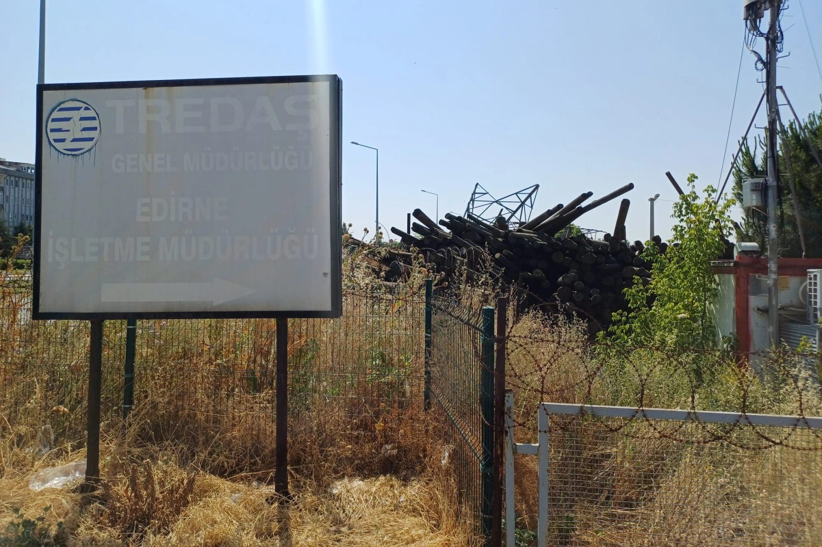 Edirne'de TREDAŞ İşletme Müdürlüğü bahçesinde bulunan kimi kırık, kimi paslanmış beton, demir ve ahşap direkler, kötü görüntüsü ile dikkat çekiyor.