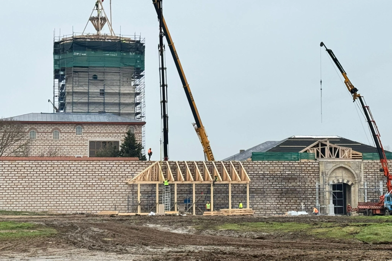 Sarayın en ikonik yapısı olan 6 katlı kasırda sona gelindi. 46,20 metre yüksekliğe ulaşacak yapı, kule bölümündeki Cihannüma Odası ve tamamlanan ahşap doğramalarıyla şehir siluetindeki yerini almaya hazırlanıyor.