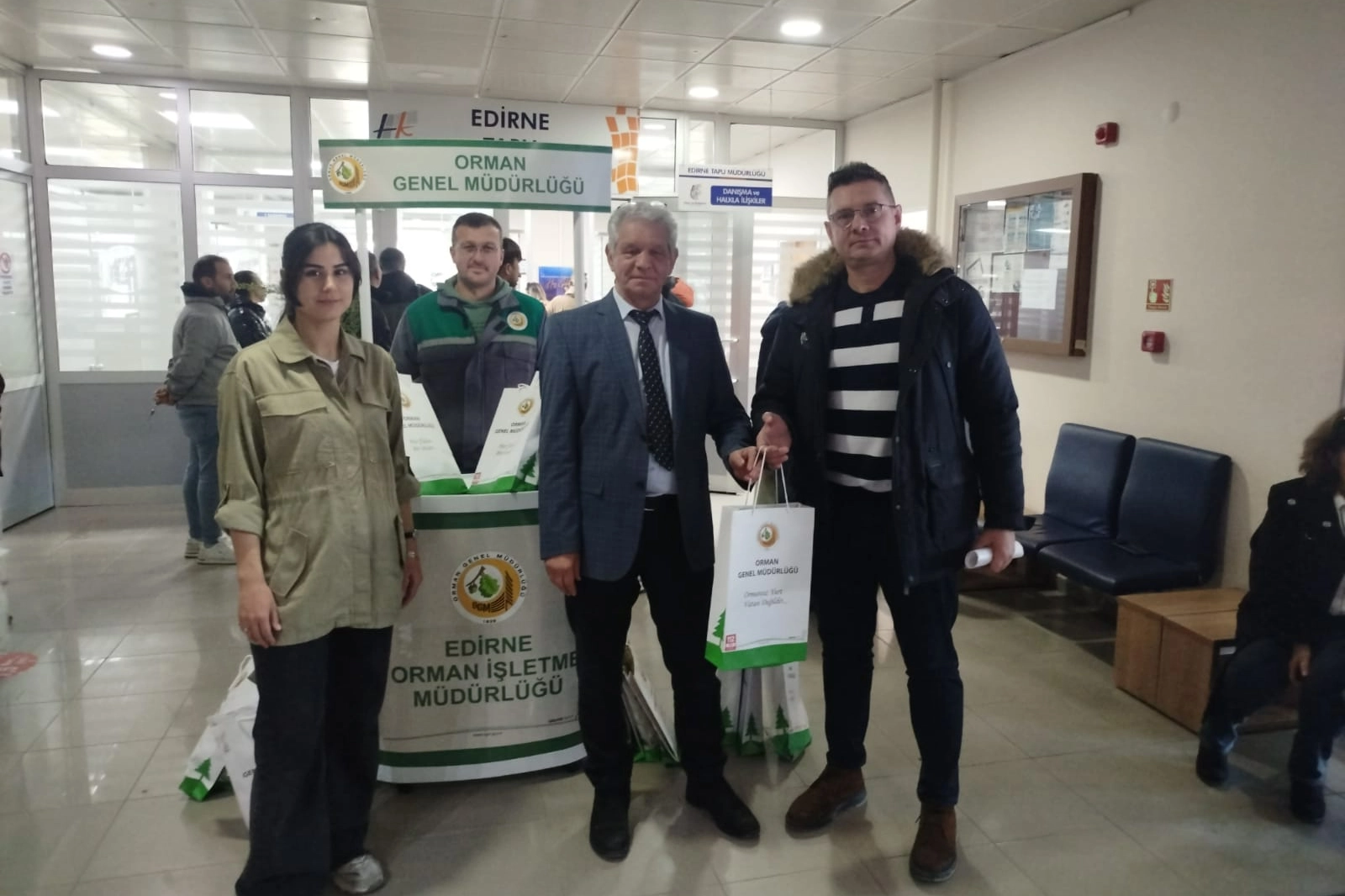 Tapu ve Kadastro Edirne Bölge Müdürlüğü ve Edirne Orman İşletme Müdürlüğü arasındaki işbirliği kapsamında Edirne Tapu Müdürlüğü girişinde stant kuruldu.