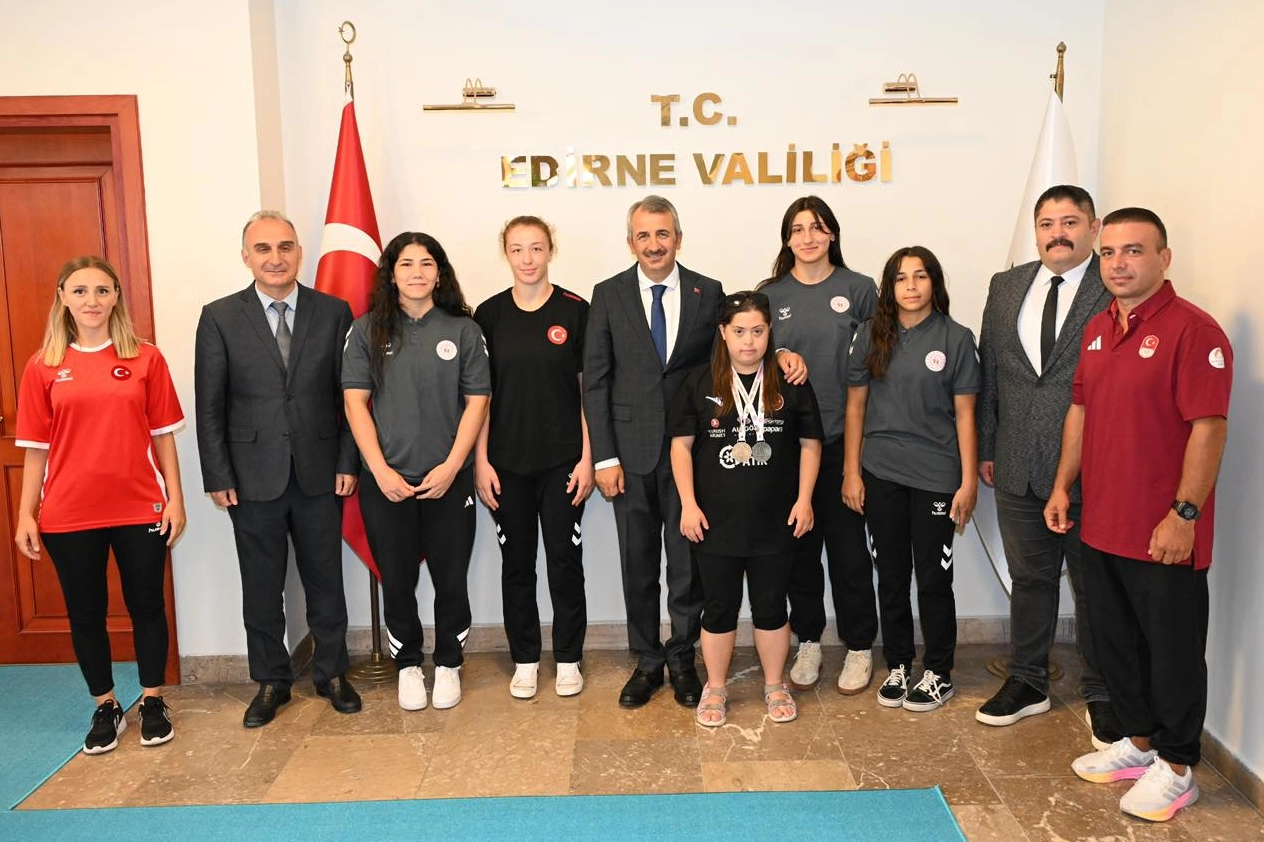 Valilikten yapılan açıklamaya göre ziyarette, "Trisome Games 2024 Down Sendromlu Sporcular Dünya Şampiyonası" 63 kilogramda dünya ikincisi Bengi Aleyna Yıldız, 17 yaş altı branşında Avrupa Şampiyonu ve dünya üçüncüsü Eylem Engin, 20 yaş altı branşında Avrupa üçüncüsü Elmira Yasin ve Ayşe Erkan ile 17 yaş altı branşında Avrupa ikincisi Fatma Yılmaz yer aldı.