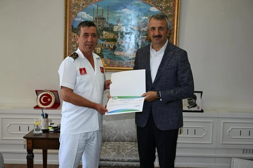 Edirne Valisi Yunus Sezer, Edirne Belediyesi Bando Şefi Süleyman Uysal’ı başarılı ve özverili çalışmaları nedeniyle makamında ağırladı.