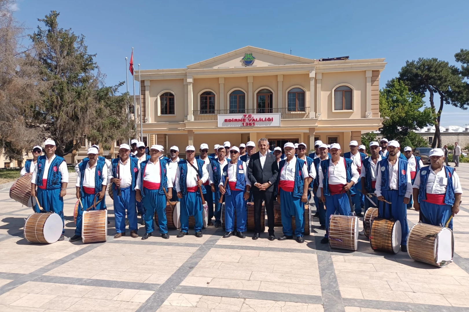 Edirne'de 664'üncü Kırkpınar Yağlı Güreşleri Festivali kapsamında Kırkpınar davul zurna ekibi, Edirne Valisi Yunus Sezer'i ziyaret etti.
