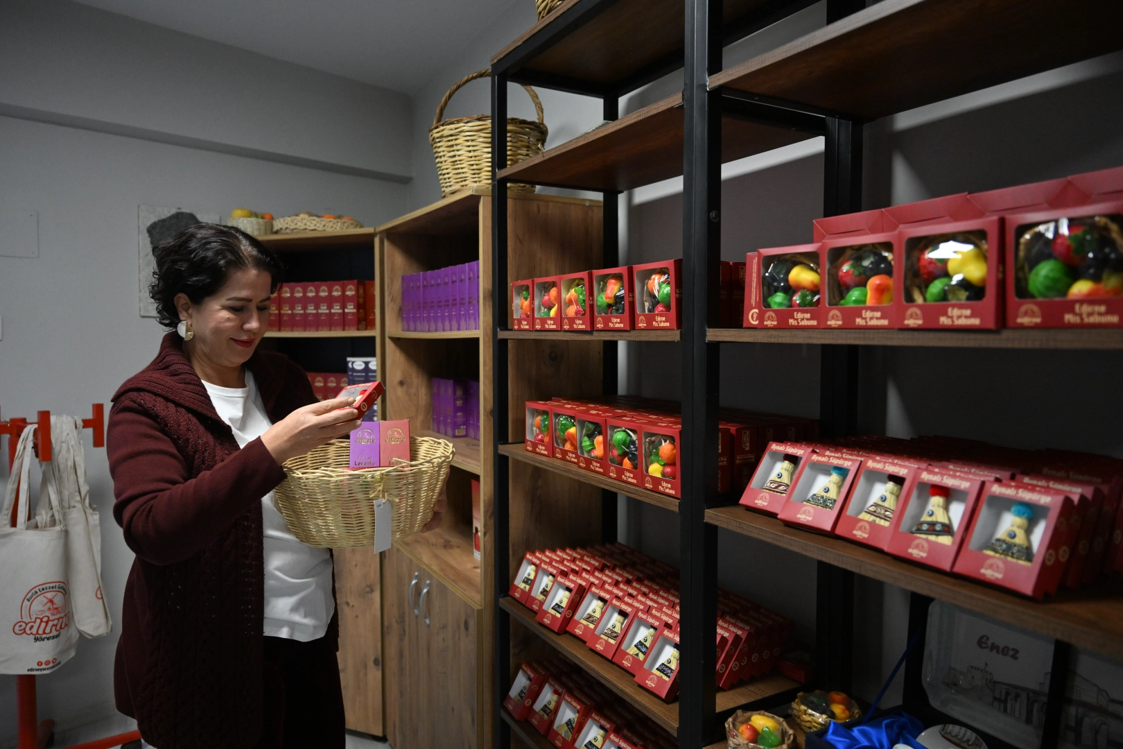 "Sayın Valimizin her ilçeden, her kadın kooperatifinden ürün alınması yönünde talimatları var. Kadınlar, ürünü hazırladığında paketlemesinde biz vakıf olarak destek oluyoruz. Lezzetin yanında sunum, görsellik çok önemli. Bizim birçok ürünümüz var. Ambalaj çalışmalarında kullandığımız renk de Edirne kırmızısı. Edirne kırmızısı da artık şehrin bir sembolü oldu, paketlerde ona ağırlık veriyoruz.