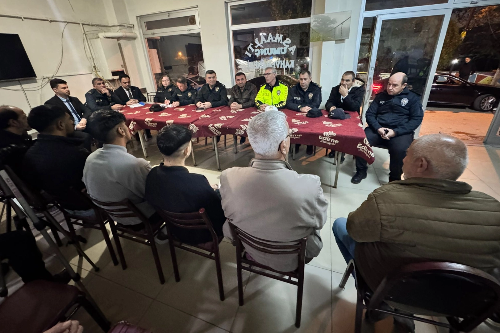 Edirne İl Emniyet Müdürü Muhittin Ayhan, Yıldırım Beyazıt Mahallesi’nde düzenlenen huzur toplantısında vatandaşlarla bir araya geldi. Vatandaşların taleplerini dinleyen müdür Ayhan, asayiş, trafik ve narkotik operasyonlarıyla ilgili bilgilendirmelerde bulundu.