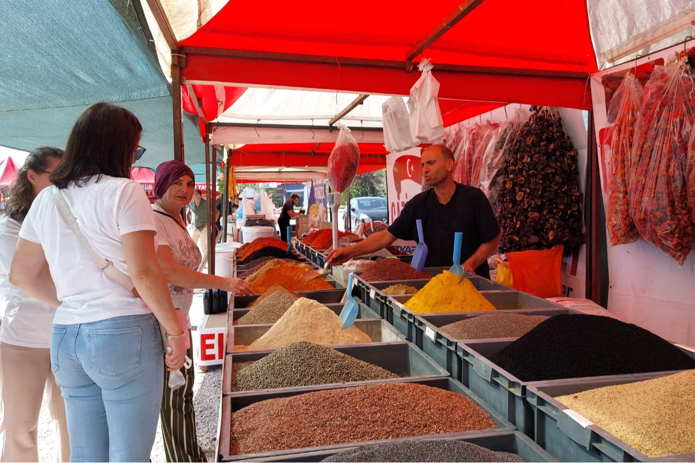 Baharatçı Dursun Arslan, “Yöresel baharat, nar ekşisi, salça gibi ürünlerimiz mevcut. Hem tanıtım hem de kazanç amaçlı buraya kadar geldik. Sıra gecesi ve çocuklar için eğlenceler olacak. Bugün yeni kurulduk. Fiyatlarımız oldukça uygun” şeklinde konuştu.