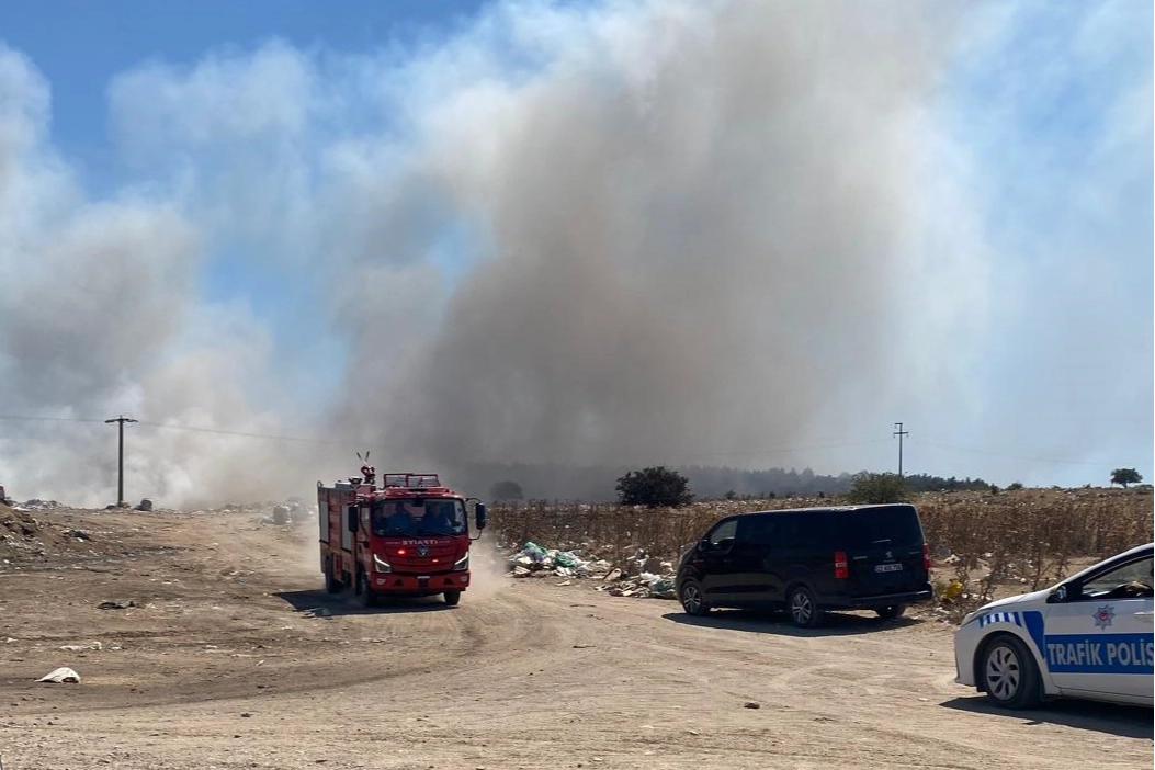 İlçe çöplüğünde henüz belirlenemeyen nedenle çıkan yangın, rüzgarın etkisiyle büyüdü.