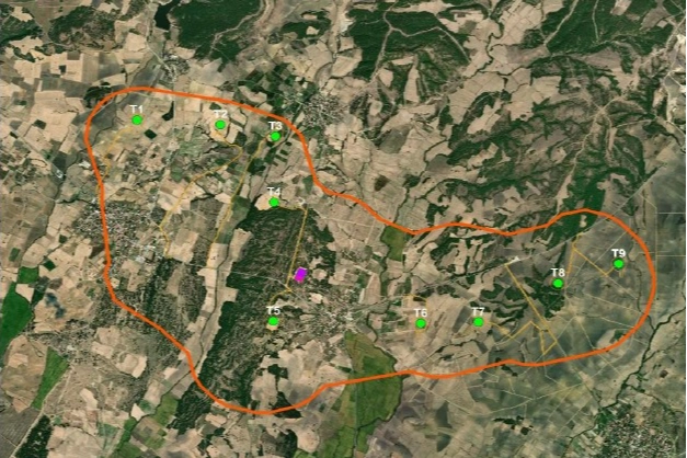 TARLA, MERA VE ORMAN VASIFLI ARAZİ ÜZERİNDETapu ve Kadastro Genel Müdürlüğü (TKGM) Parsel Sorgu Uygulamasına göre de T2, T3, T4, T5, T6 ve T7 nolu türbinler tarla, T8 nolu türbin mera, şalt merkezi ve EDT ise orman vasıflı arazi üzerinde olduğuna yer verilen dosyada, T1 nolu türbine ait herhangi bir parsel bilgisinin saptanamadığı belirtildi.