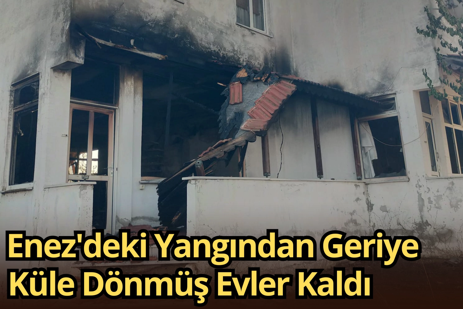 Edirne'nin Enez ilçesine bağlı Büyükevren Köyünde dün akşam saatlerinde başlayan ve bu sabah saatlerinde kontrol altına alınan yangından geriye küle dönmüş evler kaldı.