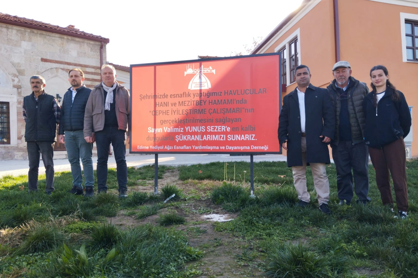 Bölge esnafları adına açıklama yapan Edirne Yediyolağzı Esnaf Derneği Yardımlaşma ve Dayanışma Derneği Başkanı Necat Yavuz yapılan çalışmaları sadece tarihi yapıyı değil, esnaf ekonomisini de güçlendirdiğini belirterek; “Havucular Hanı ve Mezitbey Hamamı'nda yapılan dış cephe iyileştirme çalışmaları, yalnızca binaların görünümünü değiştirmedi, sokağımızın tarihi ruhunu yeniden ortaya çıkardı. Bu süreçte bazı esnaf arkadaşlarımız dükkânlarını kapatmak zorunda kaldı, maddi güçlükler yaşandı. Fakat bugün ortaya çıkan bu estetik ve düzenli görünüm, o zor günlerin boşa olmadığını gösteren önemli bir kazanım oldu. Yapılan bu çalışma, sadece tarihi dokuyu değil, esnaf ekonomisini de güçlendirmiştir. Sokakların daha temiz, düzenli ve tarihi kimliğe uygun hale gelmesi; ziyaretçi sayısını artırmış, esnafın iş potansiyeline doğrudan katkı sağlamaya başlamıştır. Sokağın yenilenmesi sayesinde hem alışveriş trafiği canlanmış hem de bölgeye olan ilgi yeniden yükselmiştir. Bu dönüşümün gerçekleşmesinde Edirne Valimiz Sayın Yunus Sezer'in büyük emeği, vizyonu ve desteği vardır. Kendilerine hem esnafımıza hem de Edirne'nin genel görünümüne değer katan bu önemli çalışma için içtenlikle teşekkür ediyoruz” dedi.