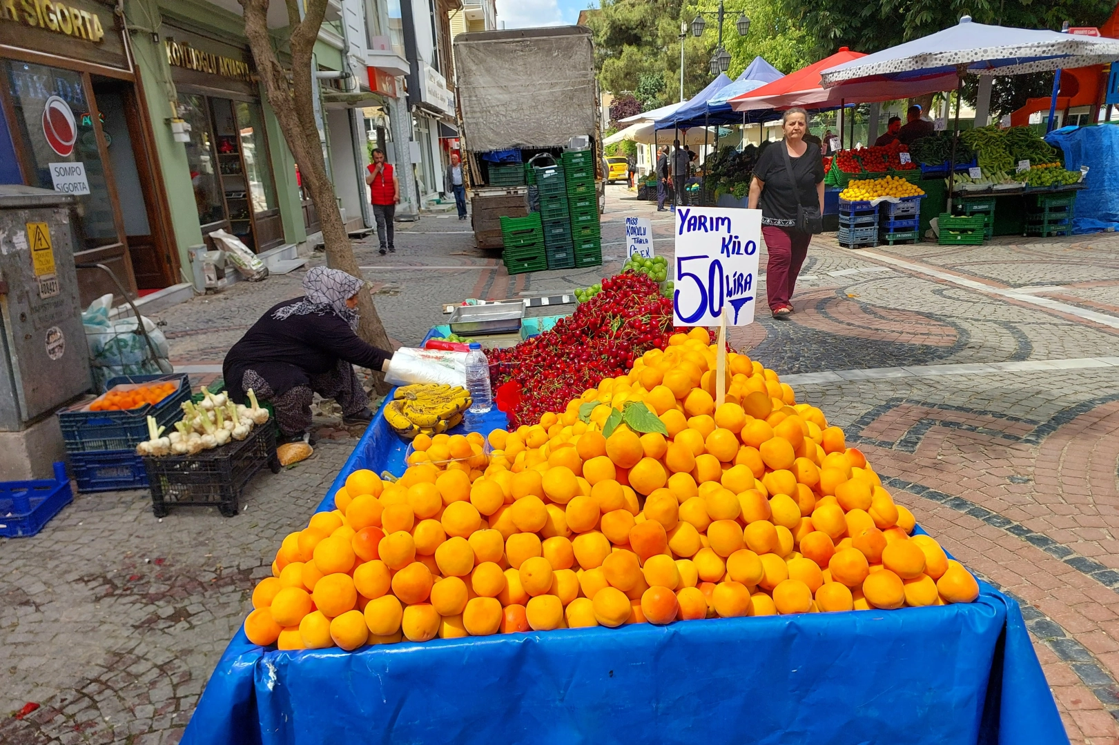 Yaz mevsiminin gelmesiyle mevsim meyveleri Edirne’deki tezgahlarda yer bulmaya başladı. Edirne’deki Balıkpazarı Caddesi’nde satış yapan seyyar satıcılar, fiyatların yüksek olması dolayısıyla ürünlerin etiketlendirilmesini yarım kilo üzerinden yapıyorlar.