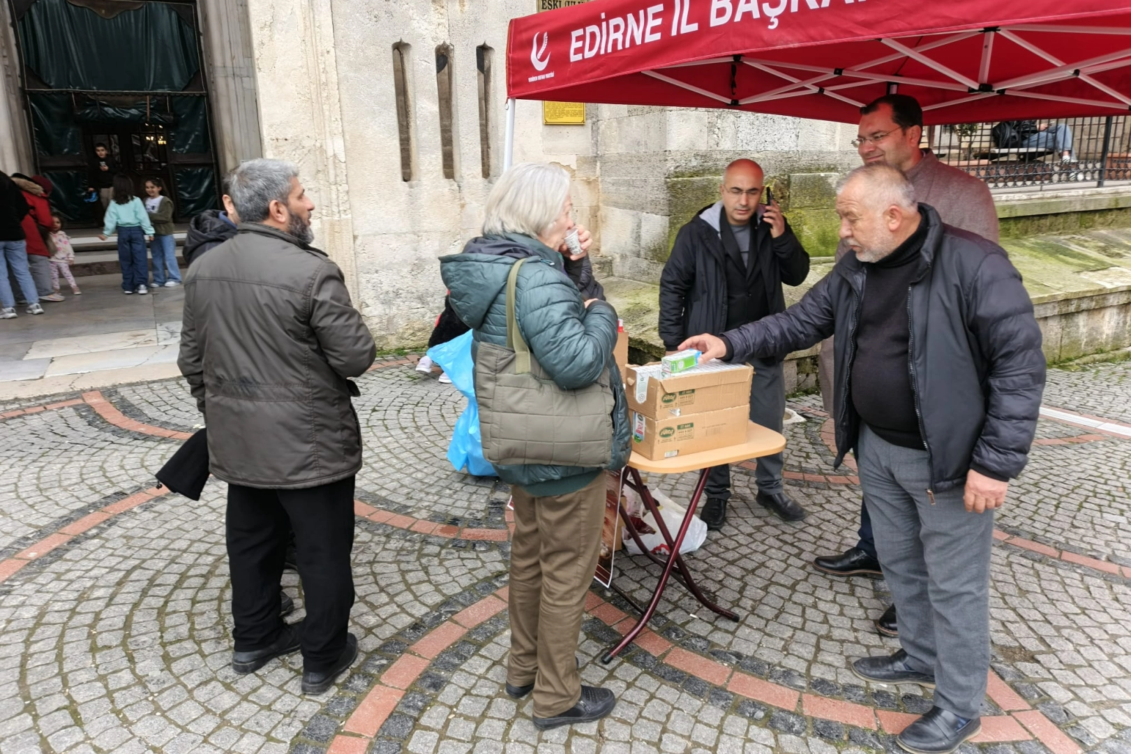 İkindi namazının ardından Eski Cami girişinde düzenlenen etkinlikte, YRP Edirne İl Başkanı Hakan Çalışkan ve yöneticileri, vatandaşlara Osmanlı şerbeti ve süt ikram ettiler.