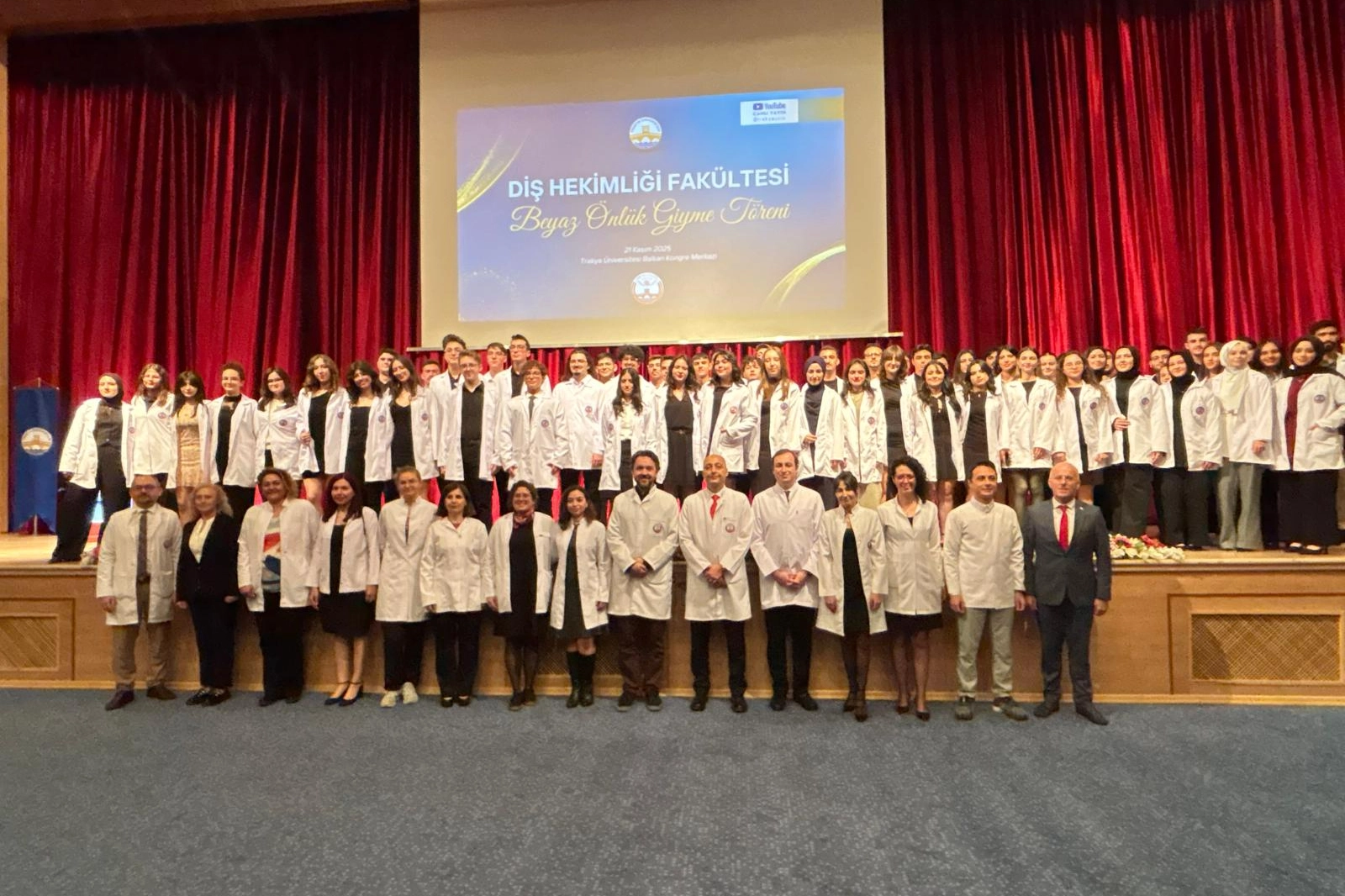 Trakya Üniversitesi (TÜ) Diş Hekimliği Fakültesi tarafından birinci sınıf öğrencilerine yönelik Beyaz Önlük Giyme Töreni gerçekleştirildi. Balkan Kongre Merkezi’nde düzenlenen programa TÜ Rektörü Prof. Dr. Mustafa Hatipler, Diş Hekimliği Fakültesi Dekanı Prof. Dr. Ahmet Alptuğ Çilingir, akademisyenler, öğrenciler ve aileleri katıldı.