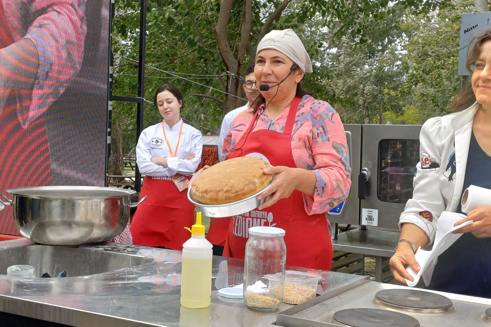 Edirne'de gerçekleştirilen gastronomi festivali geçmişin izini bugüne taşıyor. Topraktan Sofraya Edirne Gastronomi Festivali kapsamında şef Ayten Sezer, festivalin ilk workshop etkinliğinde nohut ekmeği yapımını katılımcılarla paylaştı.