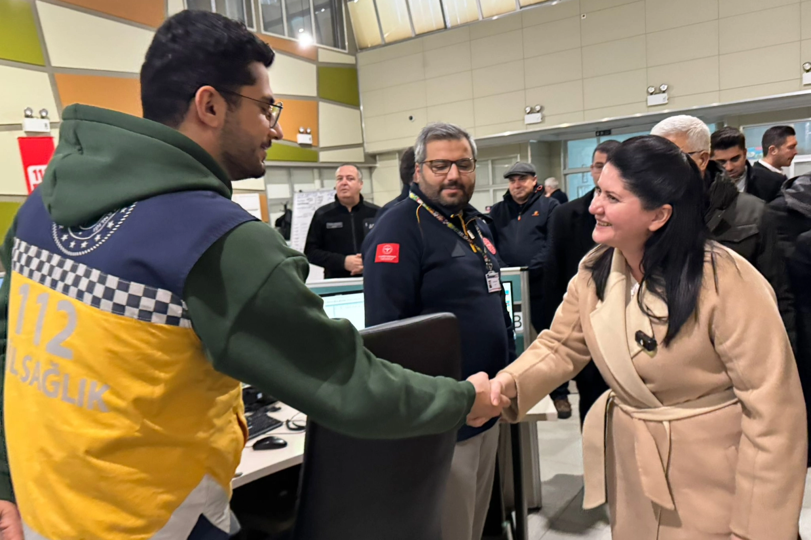 Edirne Belediye Başkanı Filiz Gencan, yılbaşı gecesi mesai mefhumu gözetmeden halkın huzur ve sağlığı için nöbette olan 112 Acil Çağrı Merkezi’ndeki personelle bir araya geldi. Ziyaret kapsamında çağrı karşılama masalarını tek tek gezen Başkan Gencan, görevli personelin yeni yılını tebrik ederek kolaylıklar diledi. Gencan, Edirnelilerin huzur ve güveni için saniyelerle yarışan ekiplere teşekkür etti.