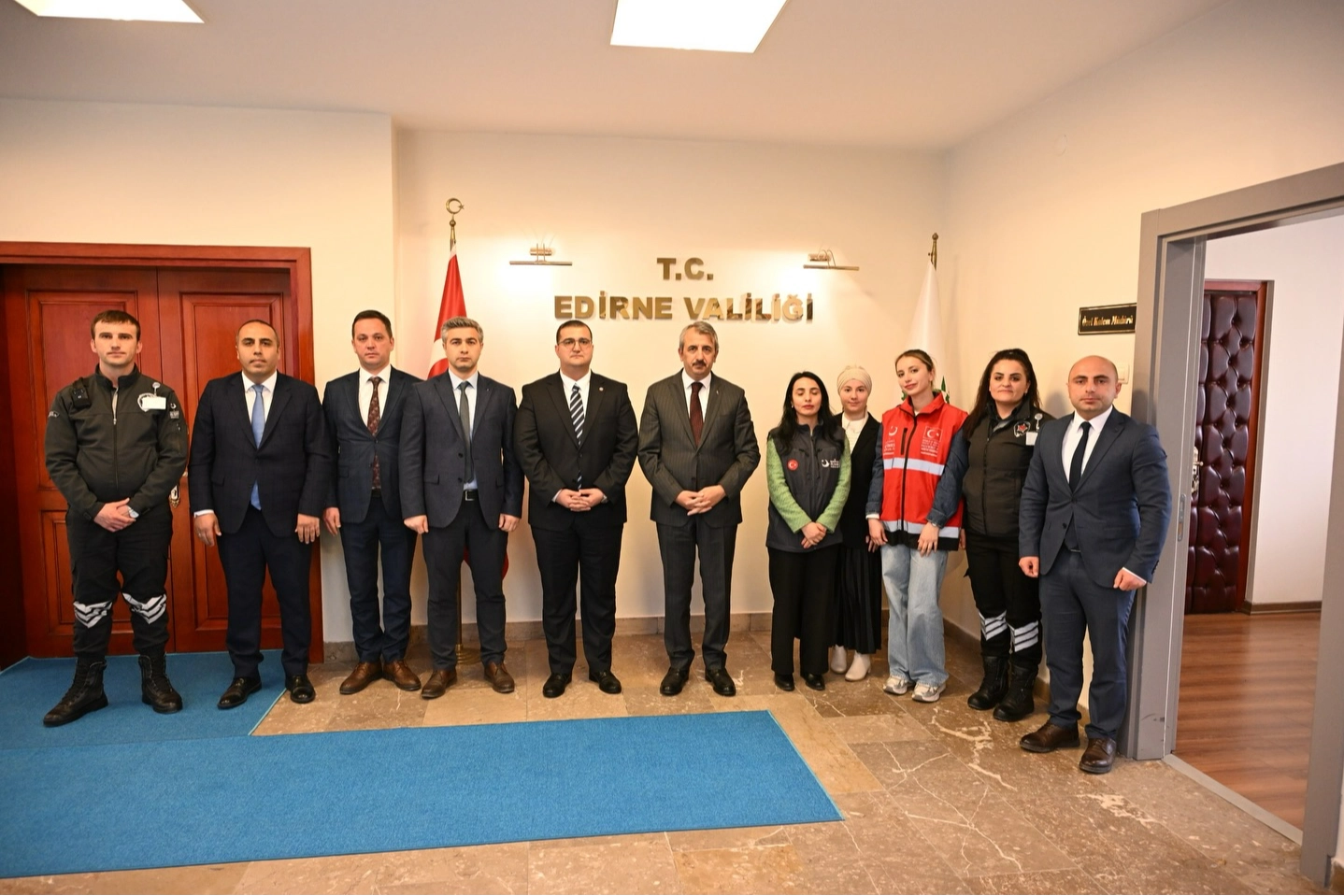 Göç İdaresi Başkanlığının 13. kuruluş yıl dönümü kapsamında, Edirne İl Göç İdaresi Müdürü Metin Nacioğlu ve beraberindeki personel, Edirne Valisi Yunus Sezer’i makamında ziyaret etti.