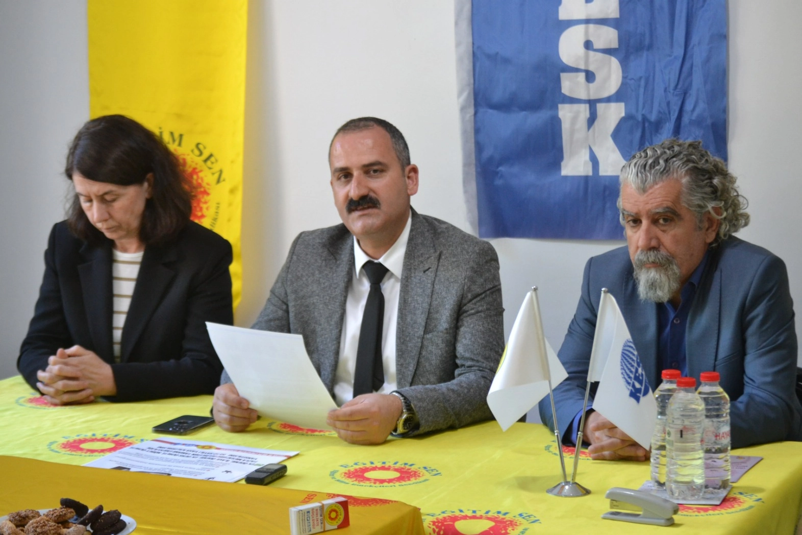 Eğitim-Sen Edirne Şube Başkanı Ahmet Acet ve yönetim kurulu üyeleri ile sendika üyeleriyle bir araya gelen Güneş ve Tolu, basın açıklaması gerçekleştirdiler. Basın açıklamasını okuyan Güneş, 8. toplu sözleşme sürecinde emekçileri mücadelede birleşmeye davet ederken; Eğitim-Sen’in vergide adalet, eşit işe eşit ücret, yan ödemelerin taban aylığına yansıtılması ve insanca yaşayacak emeklilik ücreti istediğini söyledi.
