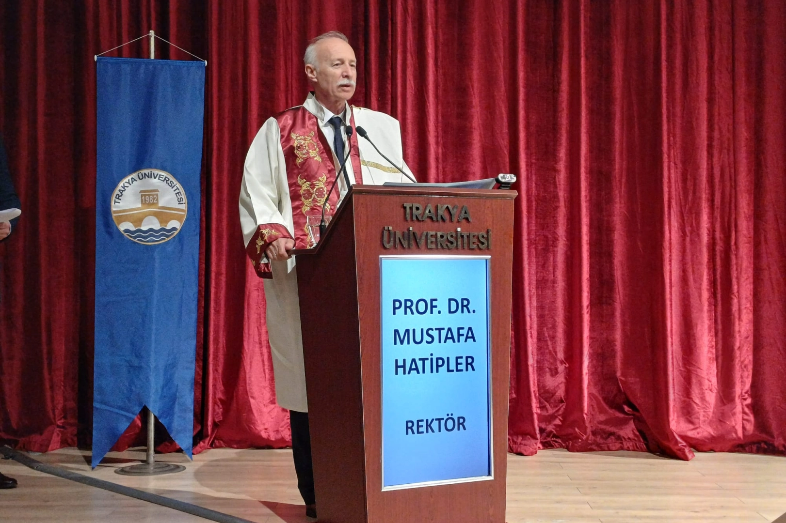 Açılış konuşmasını yapan Trakya Üniversitesi Rektörü Prof. Dr. Mustafa Hatipler, duygu dolu sözleriyle salonda bulunanlara hitap etti. Fen Fakültesi’nin üniversitenin kurucu fakültelerinden biri olduğunu vurgulayan Hatipler, bu özel günde mezun olan öğrencilerle bir arada olmaktan duyduğu onuru ve mutluluğu dile getirdi.
