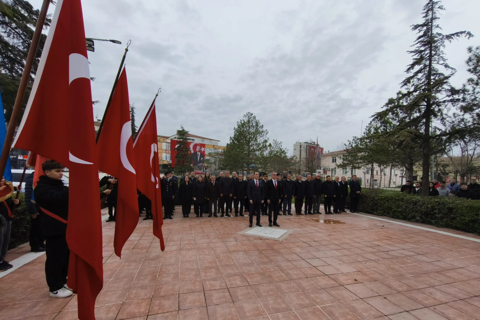 Kaymakamlık ve Belediye Başkanlığı tarafından Atatürk Anıtı’na çelenk sunulmasının ardından saygı duruşunda bulunuldu ve İstiklal Marşı okundu.