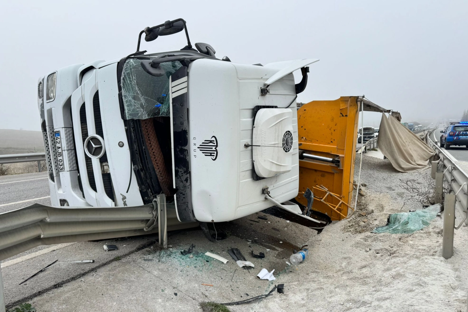 Edirne’den Havsa istikametine seyir halinde olan M. D.’nin kullandığı 42 AJB 0** plakalı kum yüklü kamyon, TED Koleji yakınlarında arıza yapan başka bir araca çarpmamak için manevra yaptığı sırada devrildi. Bariyerlerin üstüne devrilen kamyonun sürücüsü araçta sıkıştı.