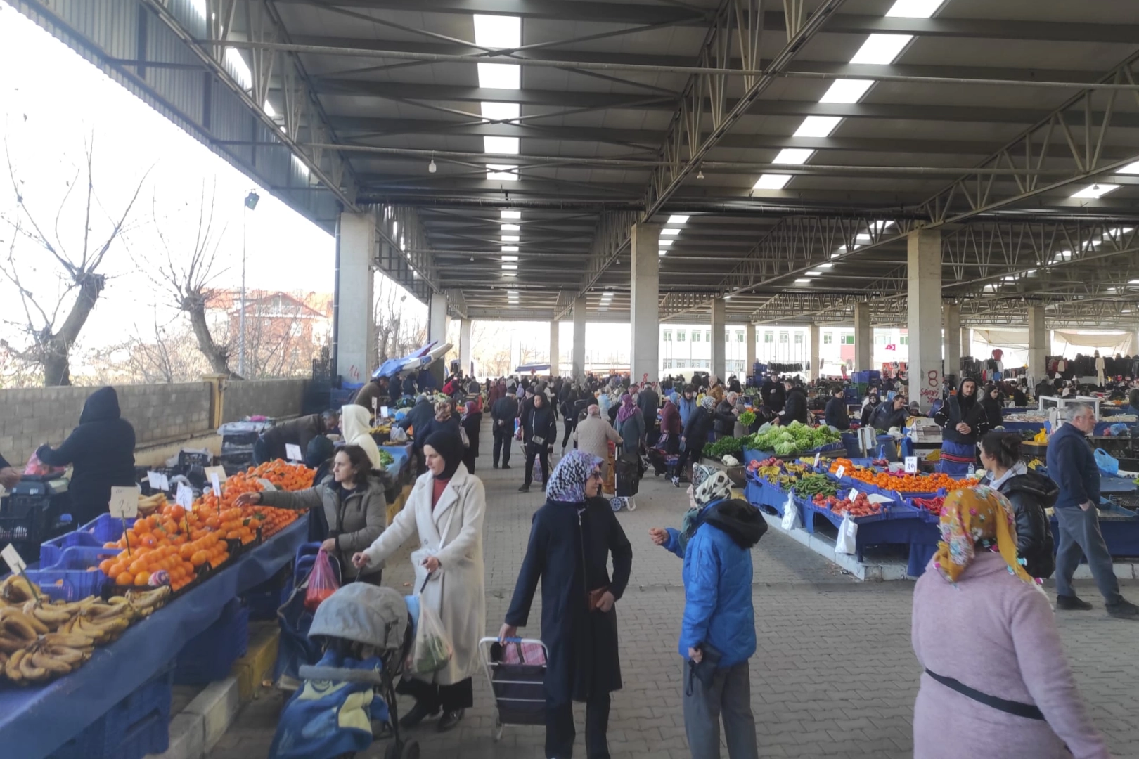 Yerel ürünlerden taze sebze ve meyveye, tekstil ürünlerinden ev ihtiyaçlarına kadar geniş bir yelpazede ürünlerin sunulduğu pazarda, özellikle kışlık yiyeceklere talebin arttığı gözlemlendi.