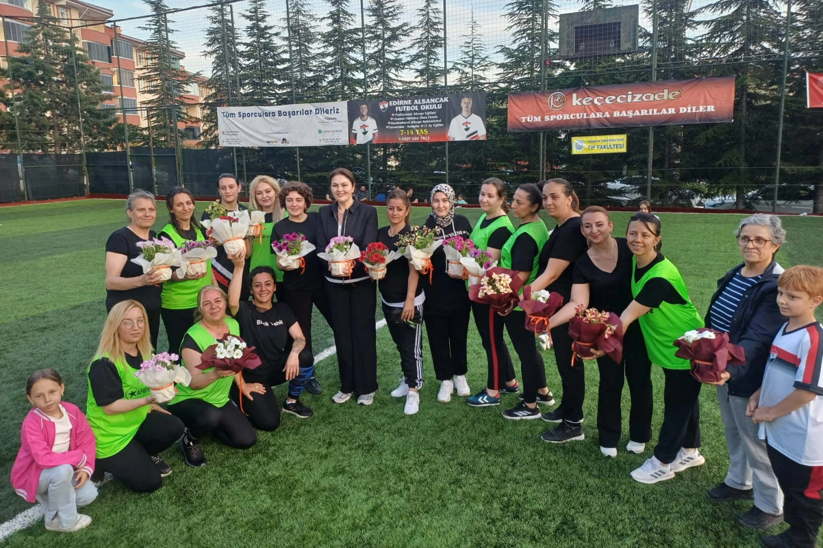 Edirne’de bugün Anneler Günü etkinlikleri kapsamında bir halı sahada, Alsancak Spor Kulübü’nün düzenlediği annelerin futbol maçına, Adalet ve Kalkınma Partisi (AK Parti) Edirne İl Başkanı Belgin İba misafir oldu.
