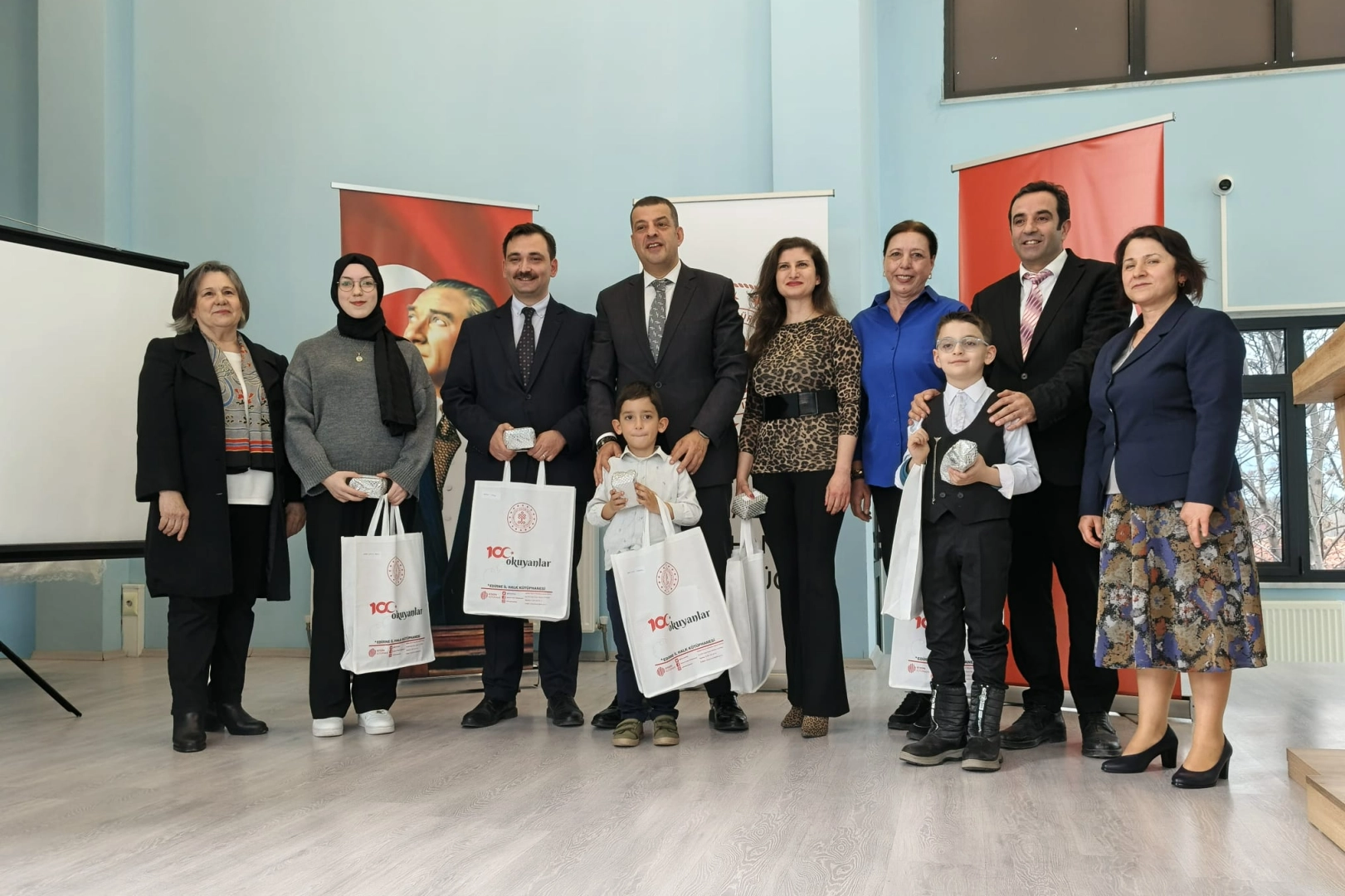 Kırkpınar İl Halk Kütüphanesi toplantı salonunda düzenlenen törene; İl Kültür ve Turizm Müdürü Kemal Soytürk, Kütüphane Müdürü Berna Erkan, İl Kültür ve Turizm Müdür Yardımcısı Kenan Koçak, Edirne Çocuk Hakları Derneği Başkanı Av. Nebahat Çavuş, okurlar, veliler ve öğrenciler katıldı.