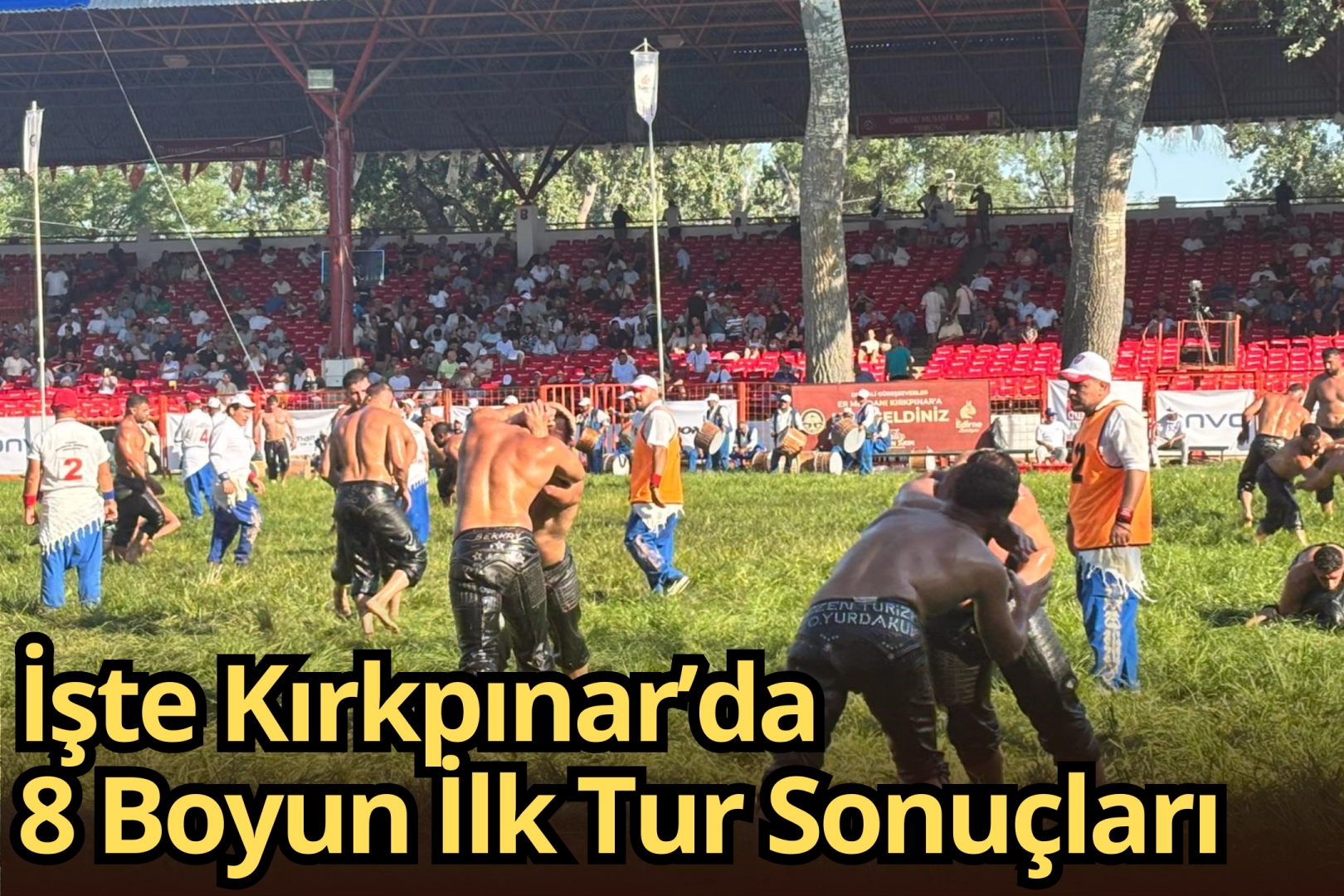 Edirne’de bu yıl 664’üncüsü düzenlenen Kırkpınar Yağlı Güreşleri’nde ilk sonuçlar açıklanmaya başladı. Er Meydanı’nda bugün saat 15.00’te başlayan güreşlerde pehlivanlar bir üst tura çıkabilmek için kıyasıya güreşirken; 8 boyun ilk tur sonuçları da belli oldu.