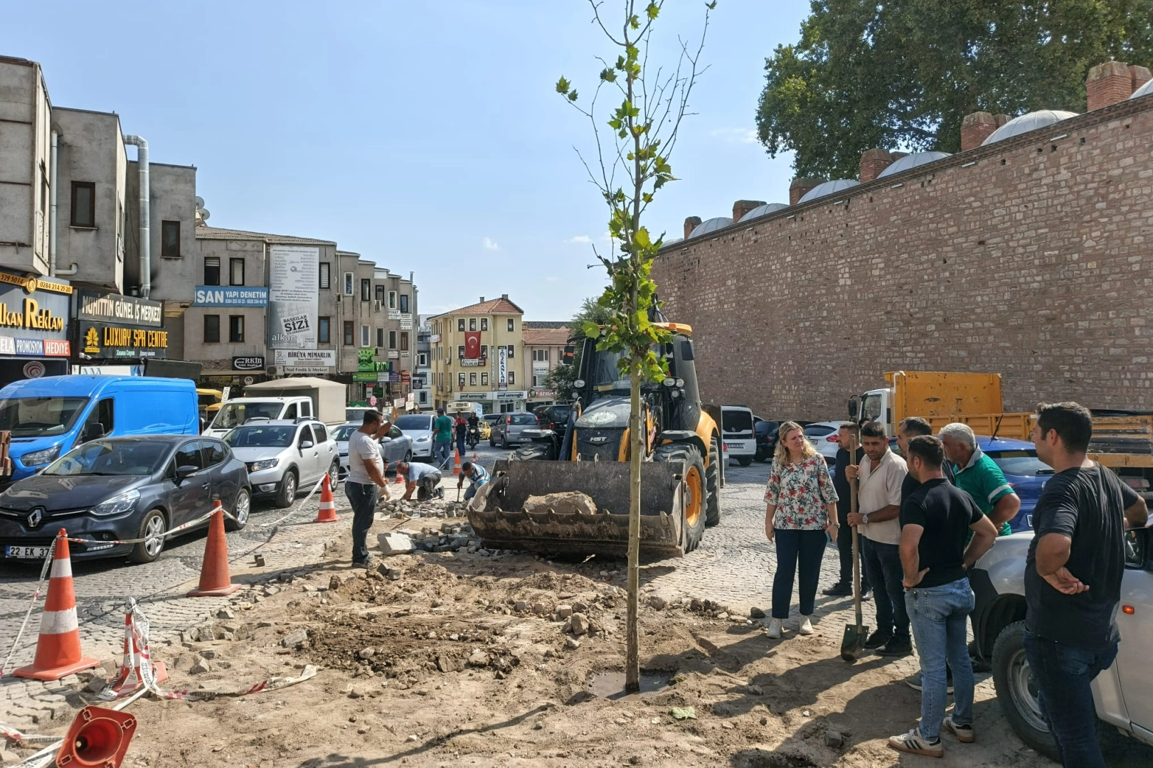 Edirne Belediyesi Park ve Bahçeler Müdürlüğü ekipleri, tepki çeken uygulamanın ardından bugün kavşağa gelerek çınar ağacı dikti.