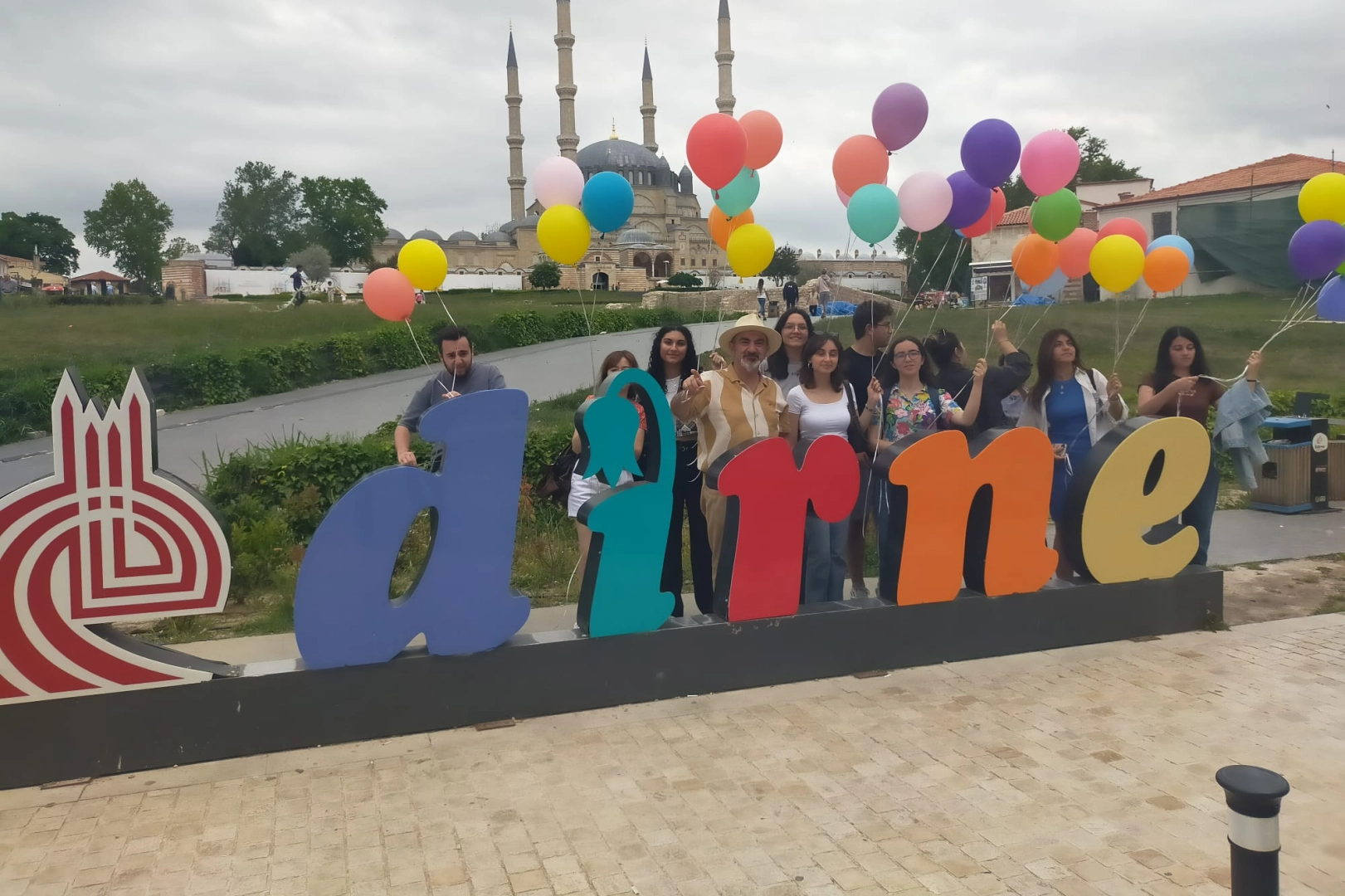 Edirne Belediye Başkan Yardımcısı Dr. Ertuğrul Tanrıkulu ve Trakya Üniversitesi Tıp Fakültesi öğrencileri Selimiye Camii meydanında balon uçurdu.