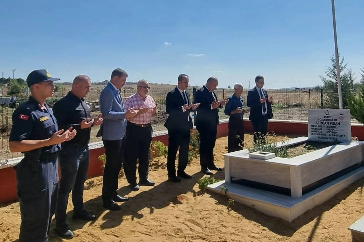 Kaymakam Fuat Sözer’e bu anlamlı ziyarette, Küplü Beldesi Belediye Başkanı Gökmen Altay, Meriç İlçe Jandarma Komutanı, İlçe Müftüsü ve Sosyal Yardımlaşma ve Dayanışma Vakfı Müdürü de eşlik etti. Şehidin baba evinde gerçekleştirilen ziyaretin ardından şehit Sercan Fidan’ın kabrine gidilerek dualar okundu.
