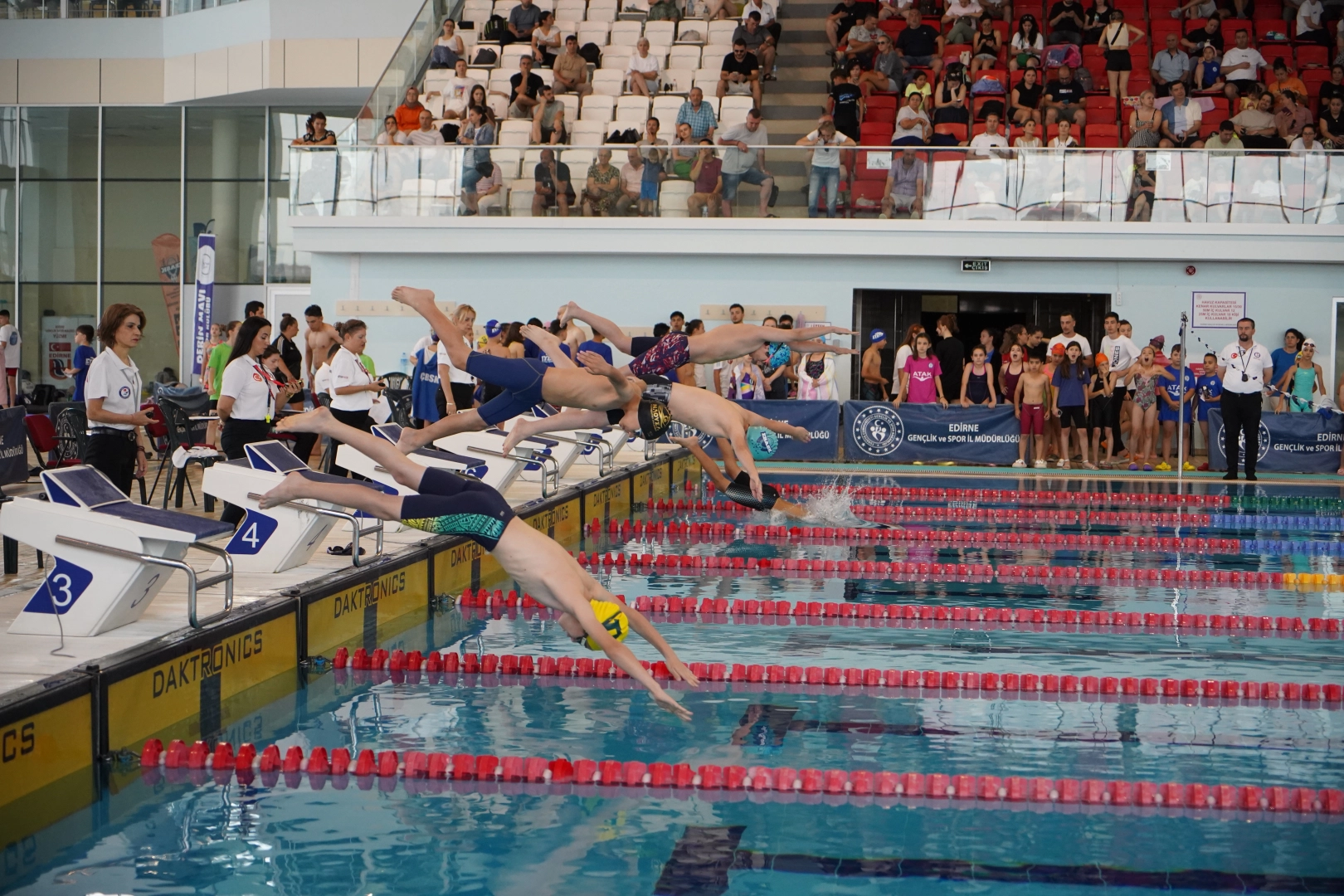 Edirne Olimpik Yüzme Havuzu'nda gerçekleştirilen yarışlara 39 kulüpten 550 sporcu katılıyor.