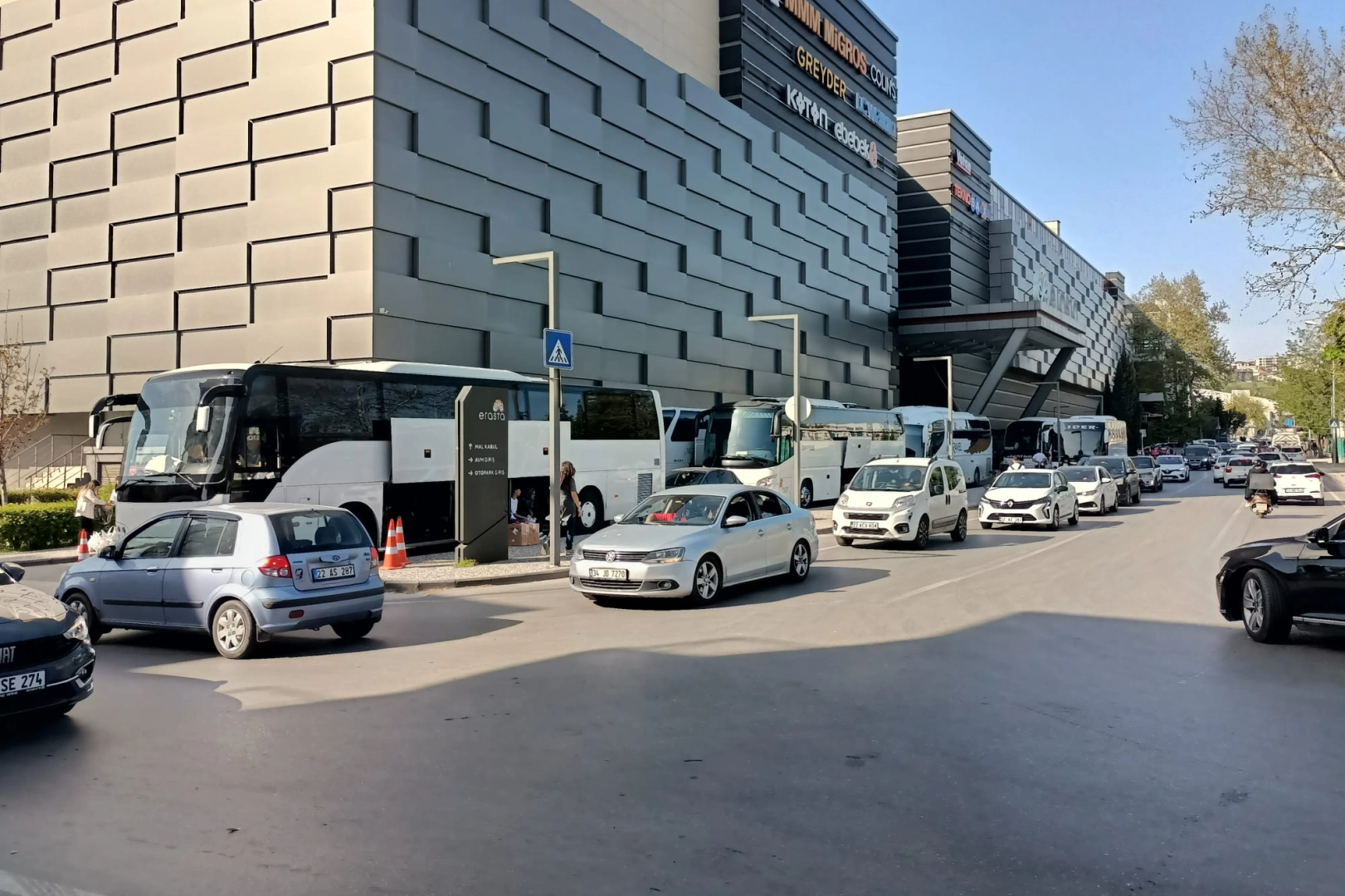 Kentteki bir alışveriş merkezinin yanında bulunan otoparktaki otobüsler ise yoğunluğuyla dikkat çekti. Büyük çoğunluğu Bulgaristan’dan olmak üzere Yunanistan plakalı otobüslerin de bulunduğu otoparkın tamamen dolu olduğu gözlemlendi. Edirne’ye adeta akın eden Bulgar ve Yunan komşuları, hava sıcaklığının da olumlu etkisiyle kentte doyasıya alışveriş yaptılar.