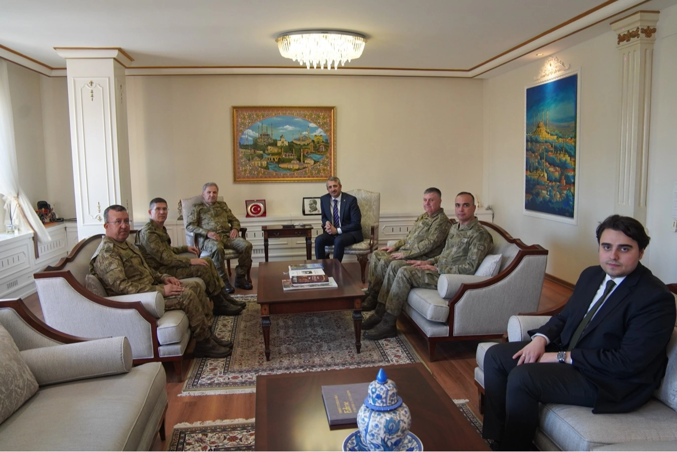 Kara Kuvvetleri Komutanı Orgeneral Metin Tokel, 1. Ordu Komutanı Orgeneral Bahtiyar Ersay ve 5. Kolordu Komutanı Tümgeneral Mehmet Cafer Aksoytürk, Edirne Valiliği’nde Vali Yunus Sezer ile bir araya geldi.