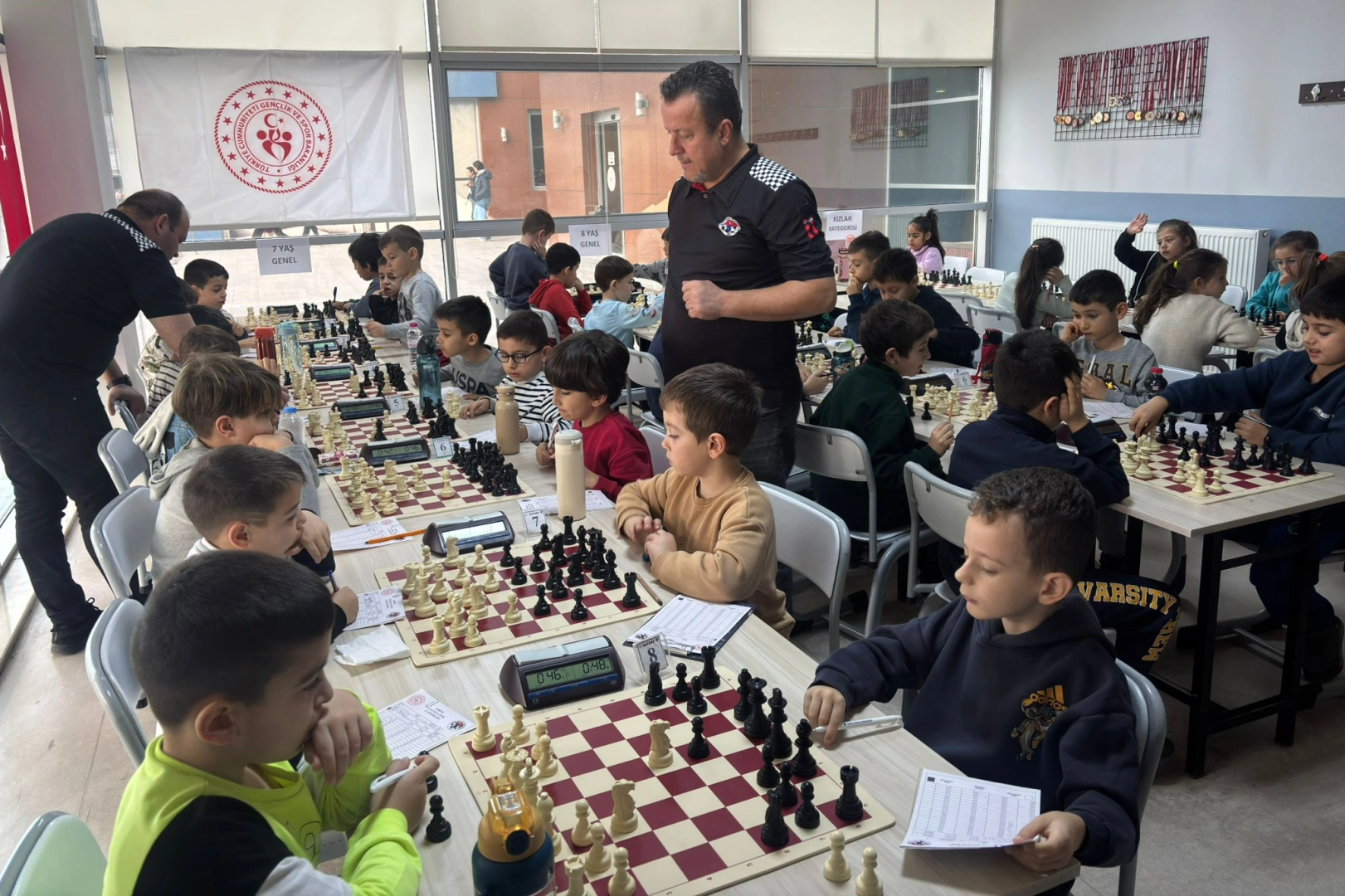 Küçükler (7-8 yaş) Satranç Edirne İl Birinciliği karşılaşmalarının final günü heyecanı Gençlik Merkezi’nde başladı. Edirne’nin yanı sıra Tekirdağ, Kırklareli ve İstanbul’dan toplam 41 sporcunun katıldığı turnuvanın final gününde sporcular koyasıya yarışıyor. Bugün gerçekleştirilen karşılaşmalarda ilk 3’e giren sporcular madalya almaya hak kazanacak.