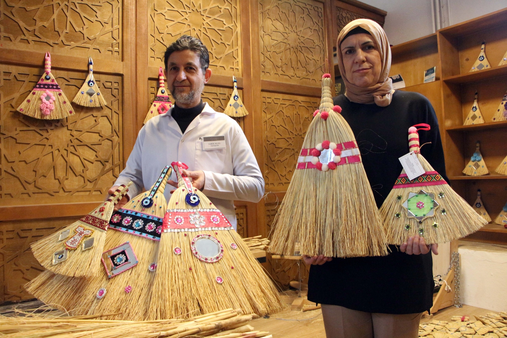 Aynalı süpürge yapımında Kuzu'ya yardım eden eşi Ayşe Kuzu da "Tamamen meraktan süpürge yapımına başladım. Eşim zaten bu işi yapıyordu, sonra aynalı süpürgeye dönünce beraber yapmaya başladık. Ben de şunu yapayım, ben de bunu yapayım derken beraber yapmaya başladık. 20 seneden beri beraber çalışıyoruz. Eşim süpürgesini yapıyor, ben de süslemelerini yapıyorum. Üzerine objeleri koyuyorum. Gençler istemiyorlar, aileler de istemiyorlar öğrenmelerini, yeteri kadar para kazanamayacaklarını düşünüyorlar herhalde. Çocuklarda da gençlerde de bu mesleği öğreneyim diye bir merak yok. Daha çok parasal yönden düşünüyor insanlar, 'bunu yapabilirsem para kazanabilir miyim' şeklinde düşünüyorlar. Bu, tek başına olacak bir iş değil. Pazarlaması, süpürge telinin bulunması, malzemelerinin bulunması falan, onlar biraz zor tabii. Ama burada önemli olan Edirne'nin mirasının yaşatılması" diye konuştu. (