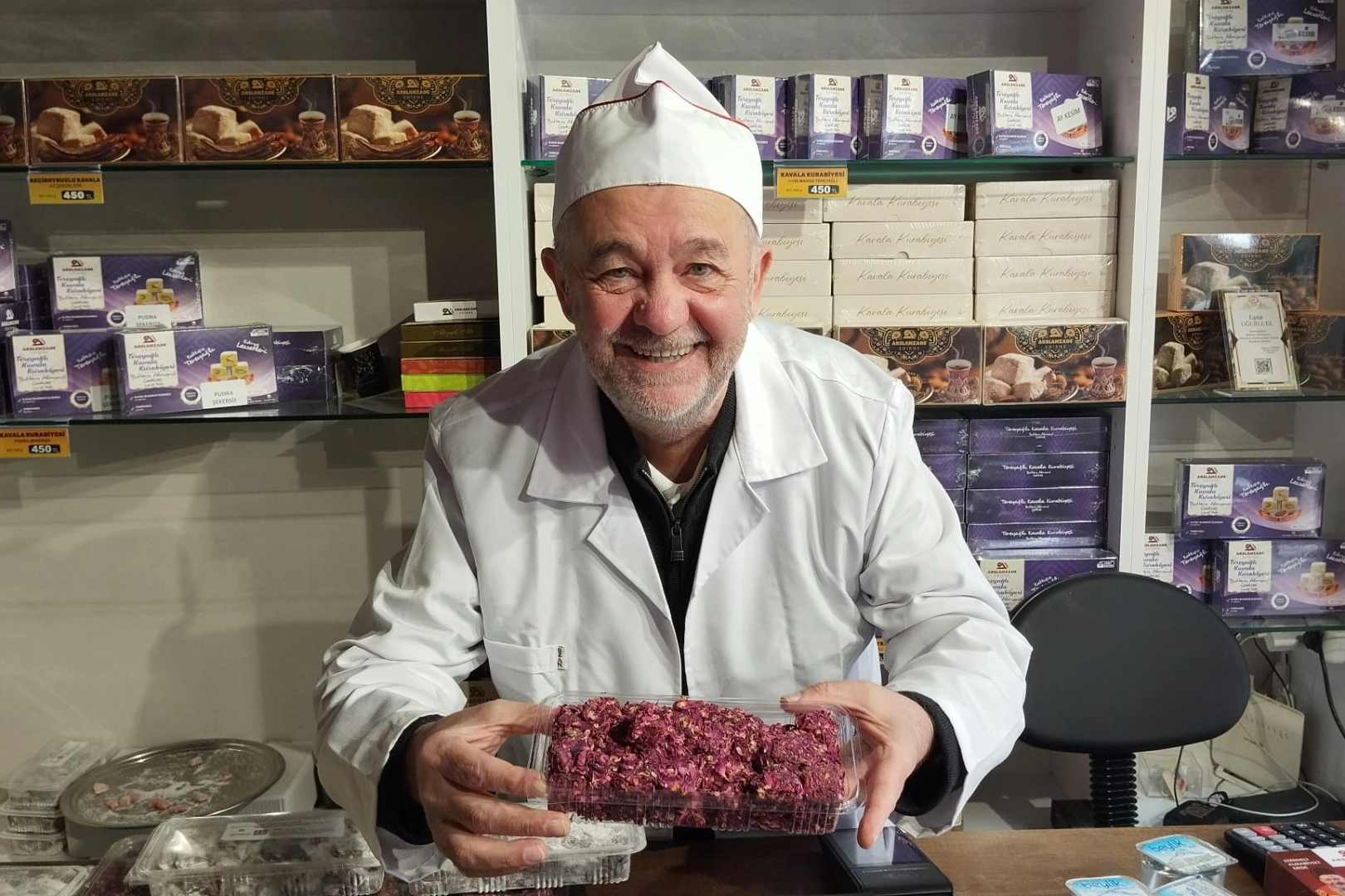 Edirneli “Kurabiyeci Dede” olarak bilinen şekerlemeci Arif Meriç, yaklaşan Kakava şenlikleri için özellikle Edirne Sarayı’nda meşhur olan yediveren güllerinden “Gül yapraklı lokum” yaptı. Gül yapraklarıyla kaplı lokumu yılda bir kez ürettiğini belirten Kurabiyeci Dede Arif Meriç, lokumu sadece Kakava’ya özel olduğunu ifade etti.